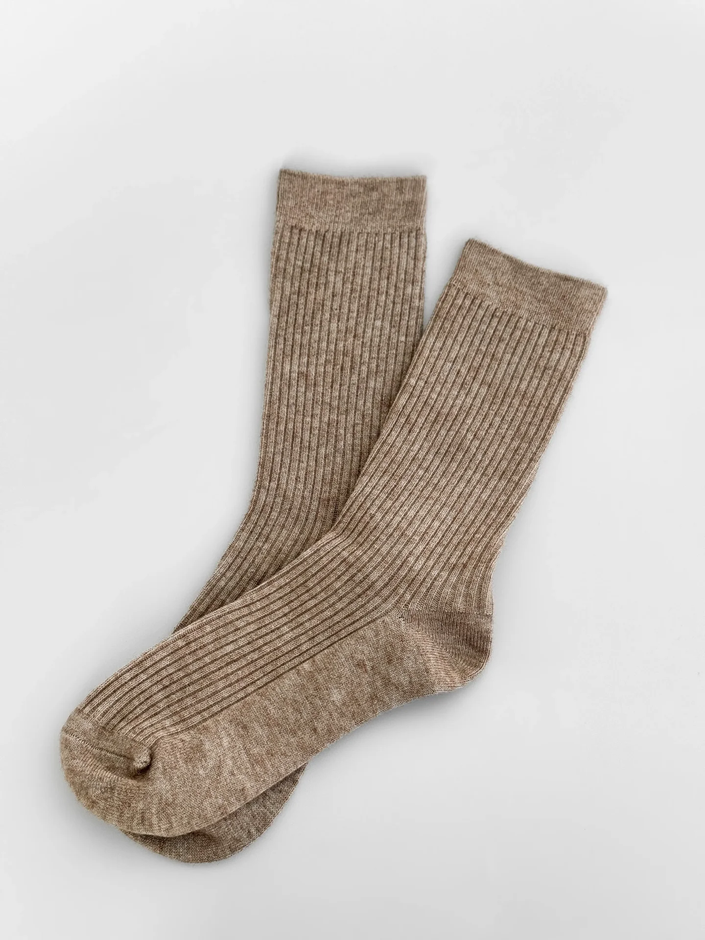 Skarpety Twins wysokie, wełniane prążkowane, cappuccino