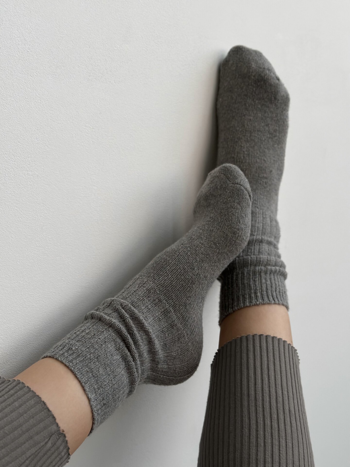 Skarpety Twins wysokie, wełniane, szare