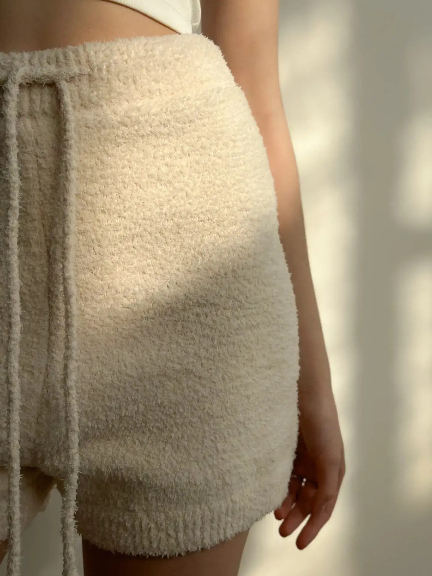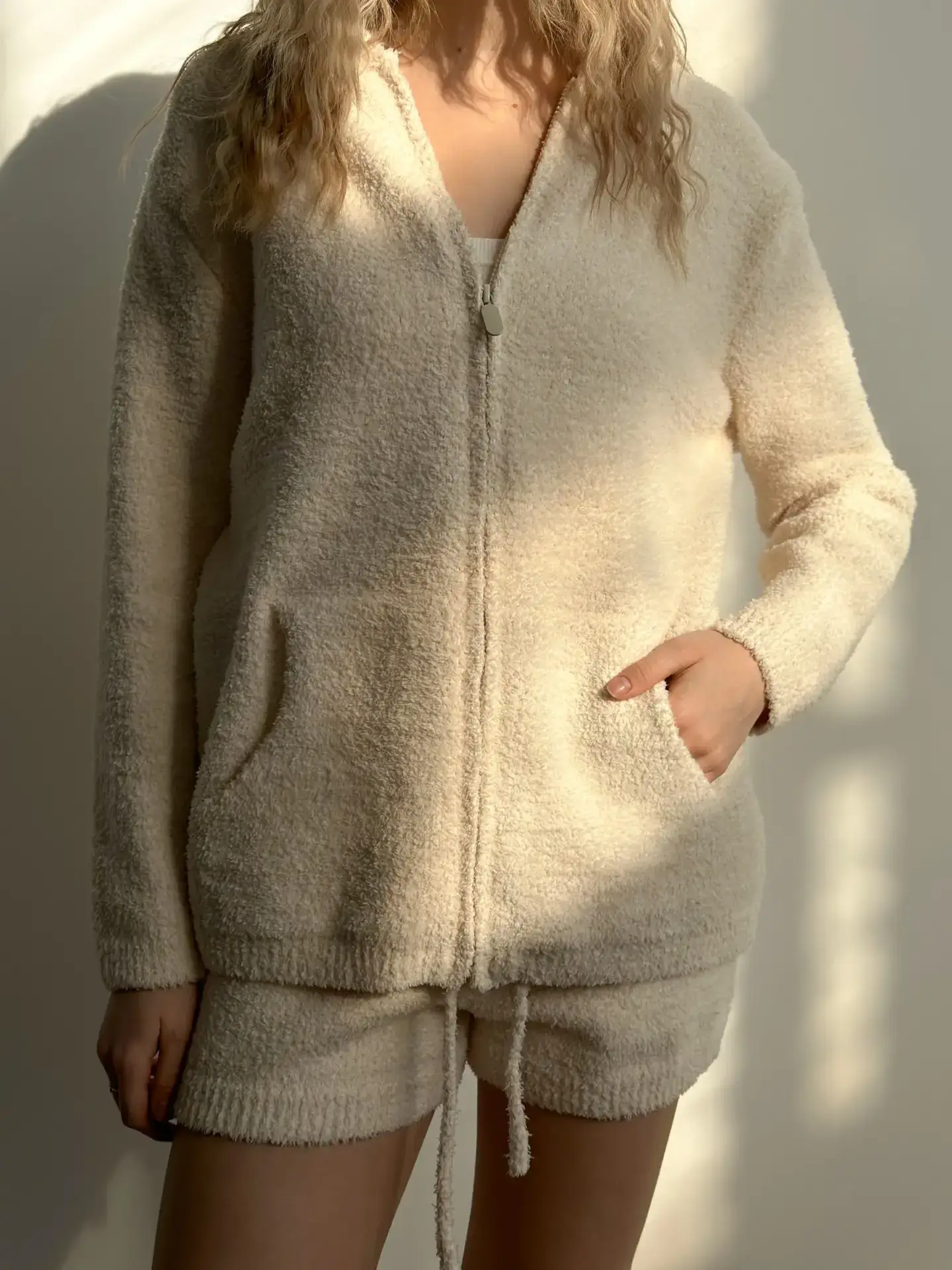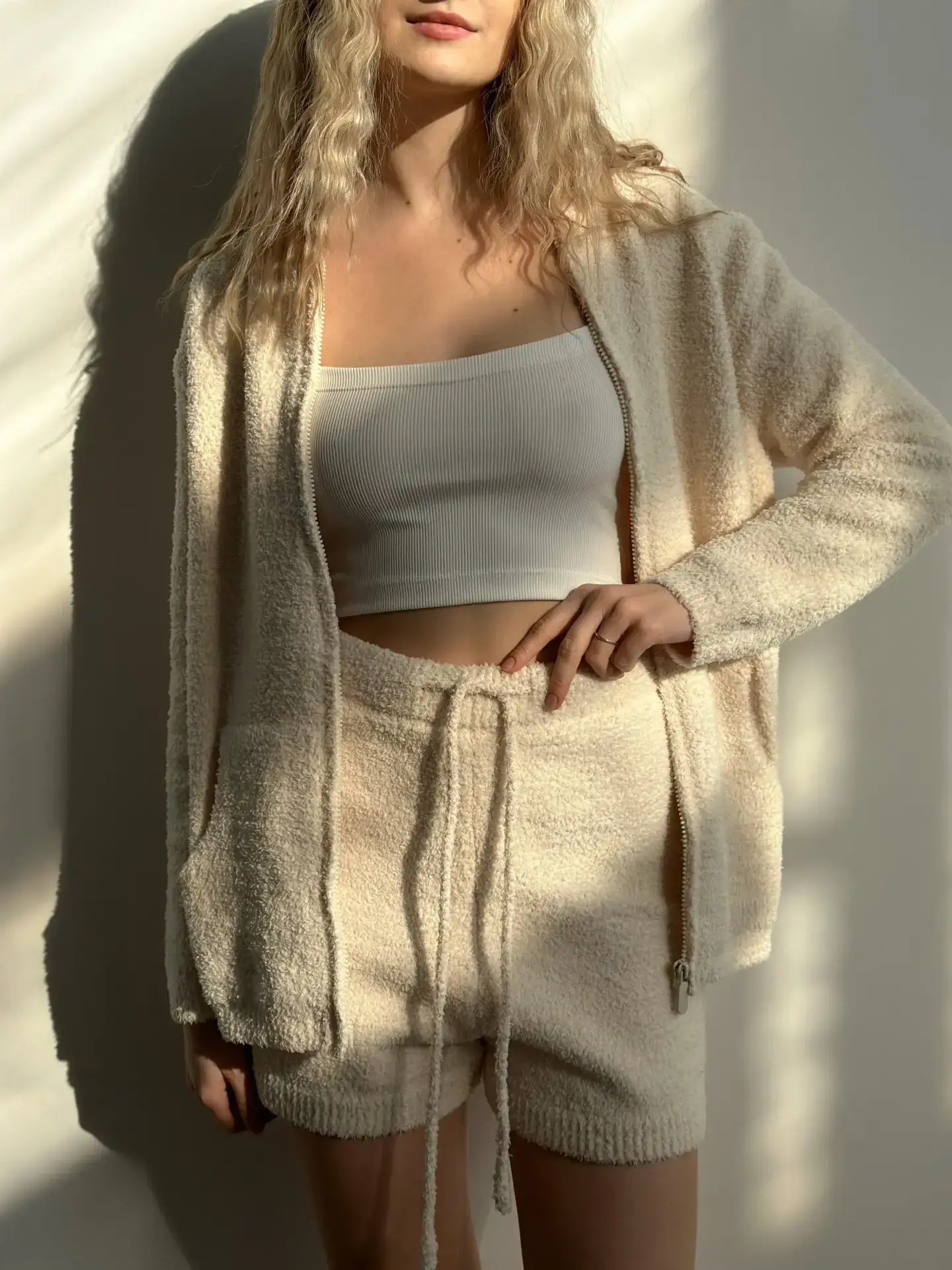 Komplet Soft bluza na zamek i szorty, z dzianiny puszystej, mleczny
