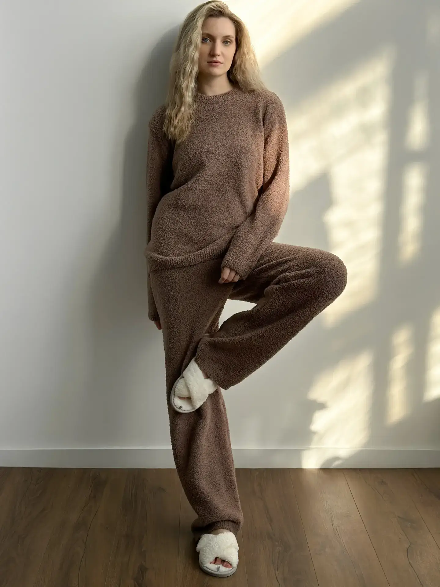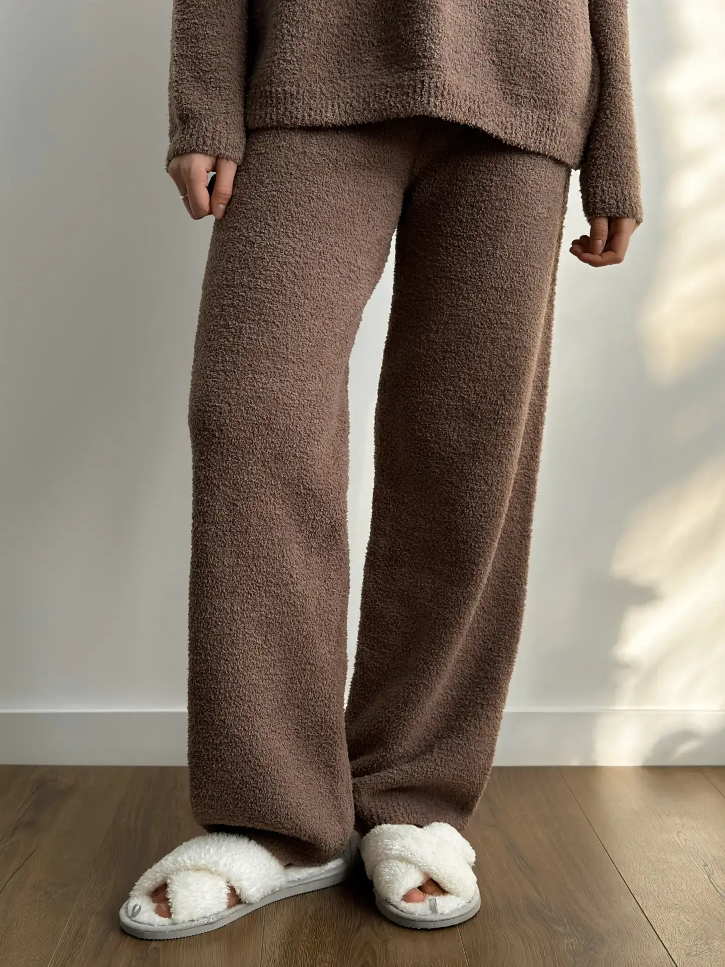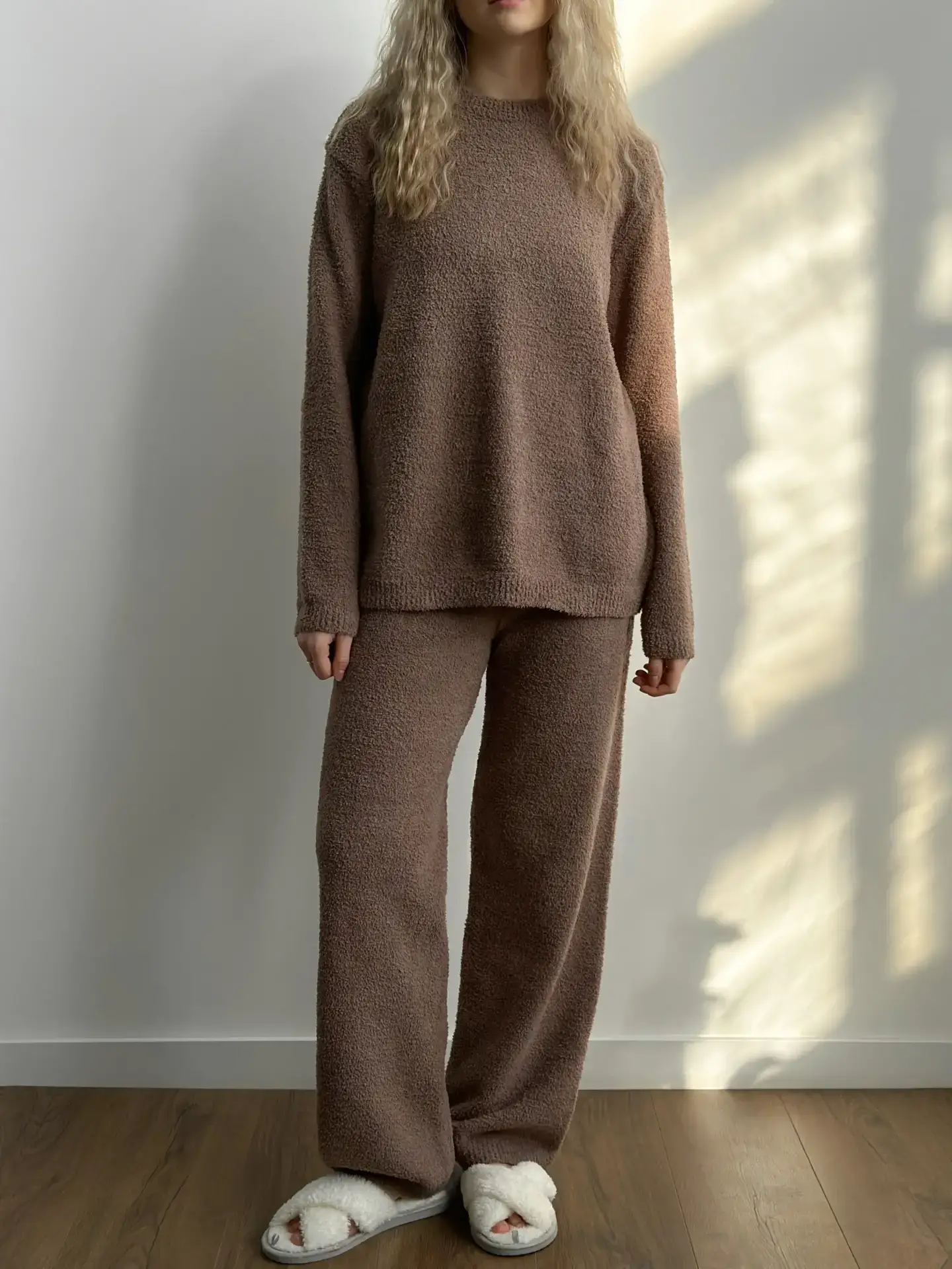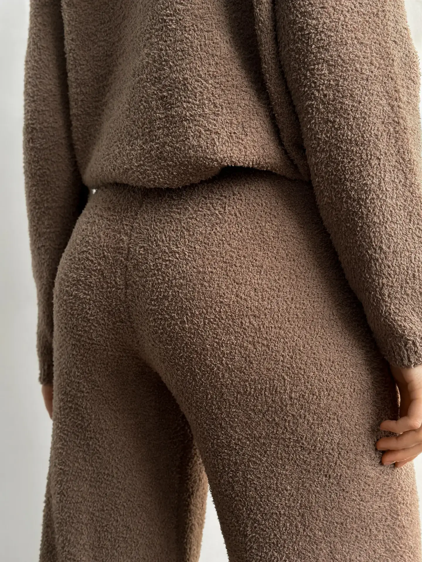 Komplet Soft bluza i spodnie, z dzianiny puszystej, brązowy