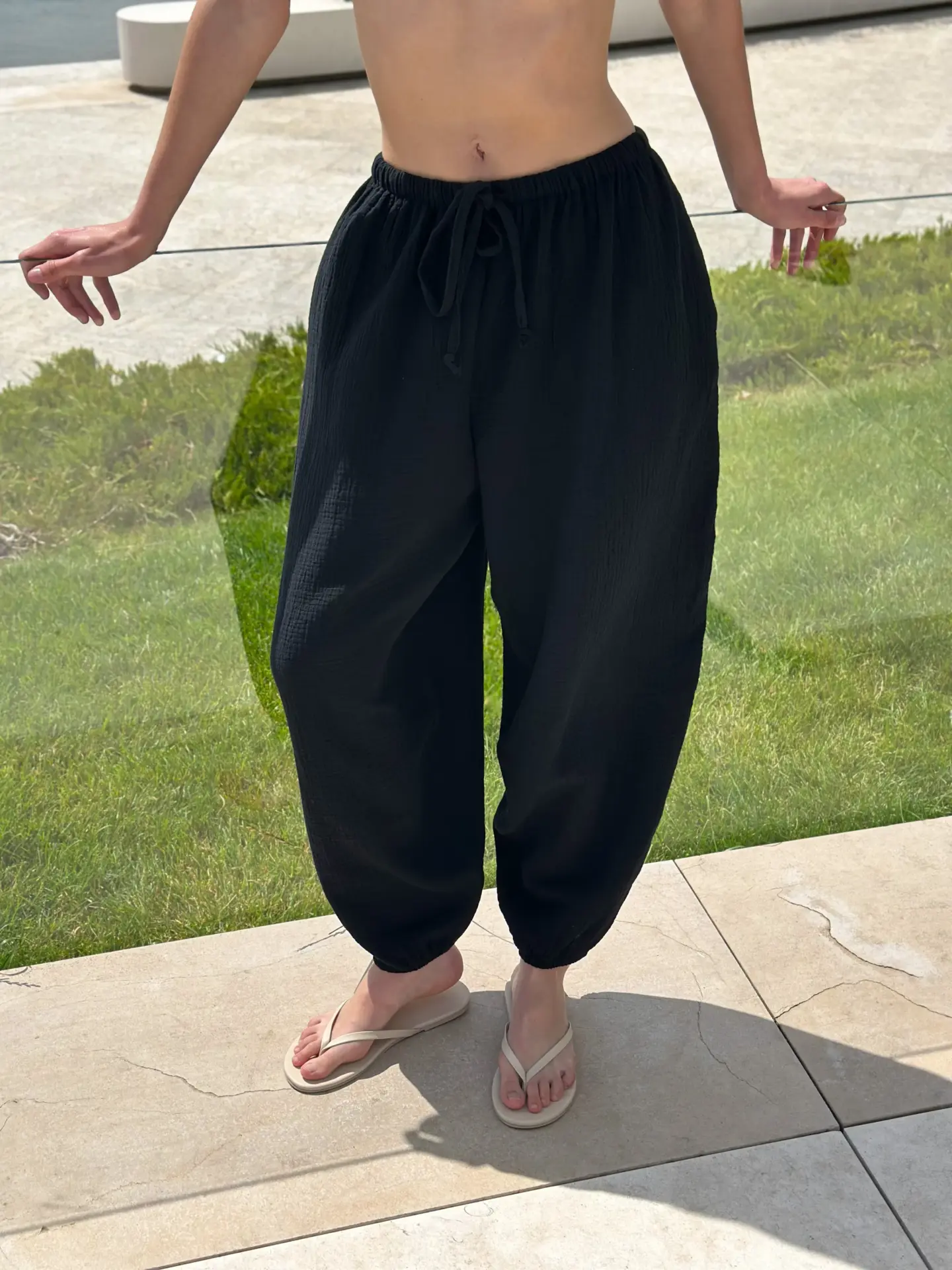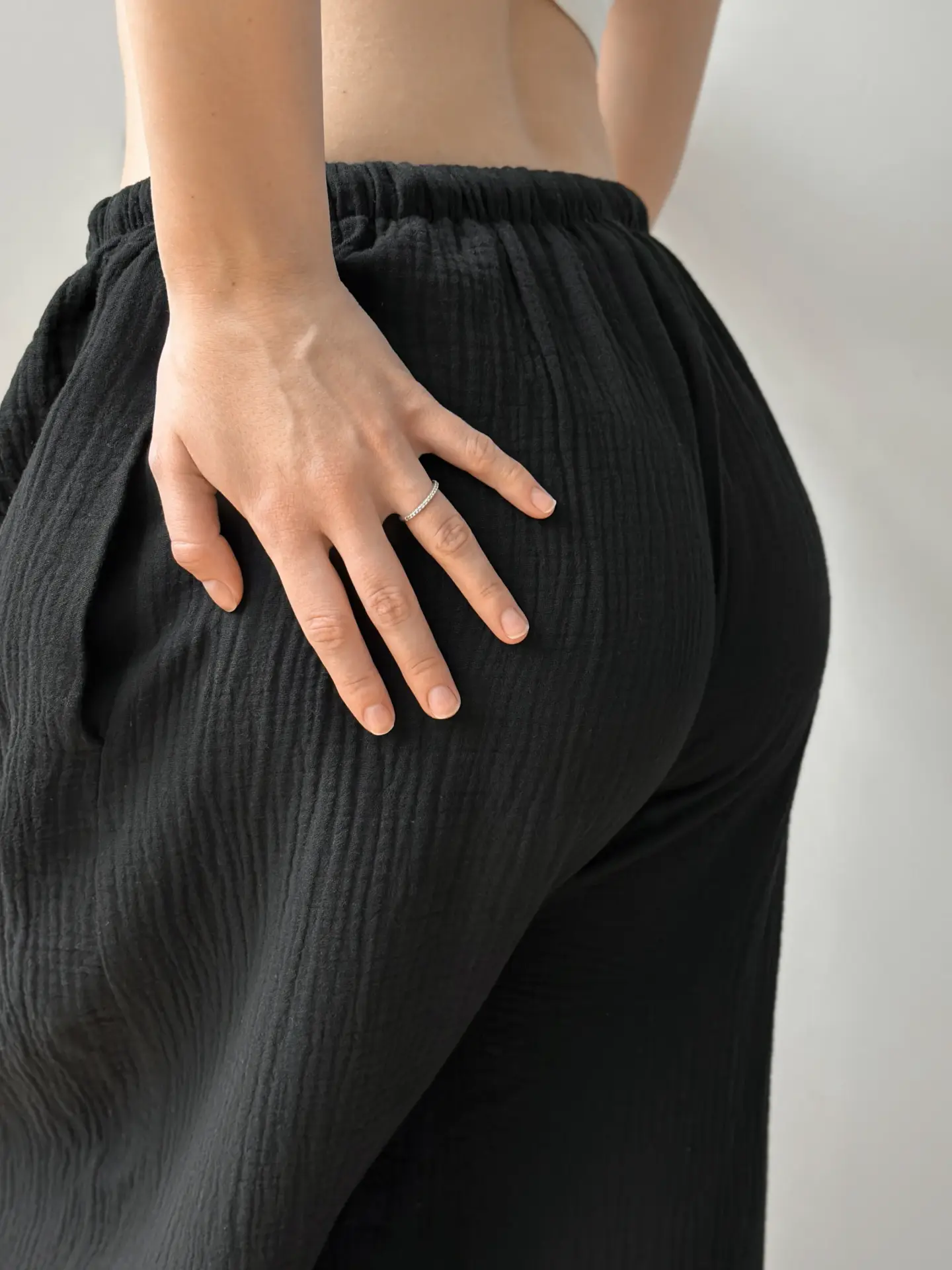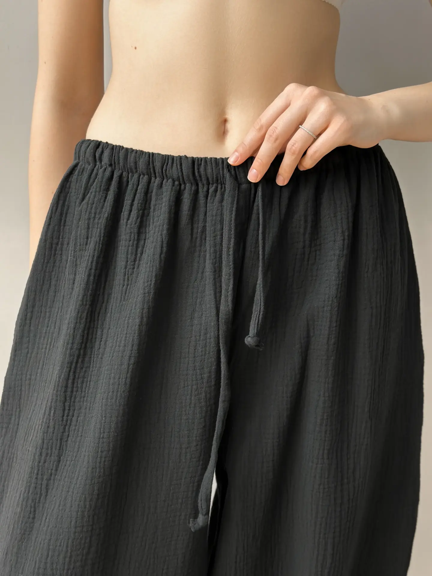 Spodnie Mono szarawary z muślinu dwuwarstwowego, czarne