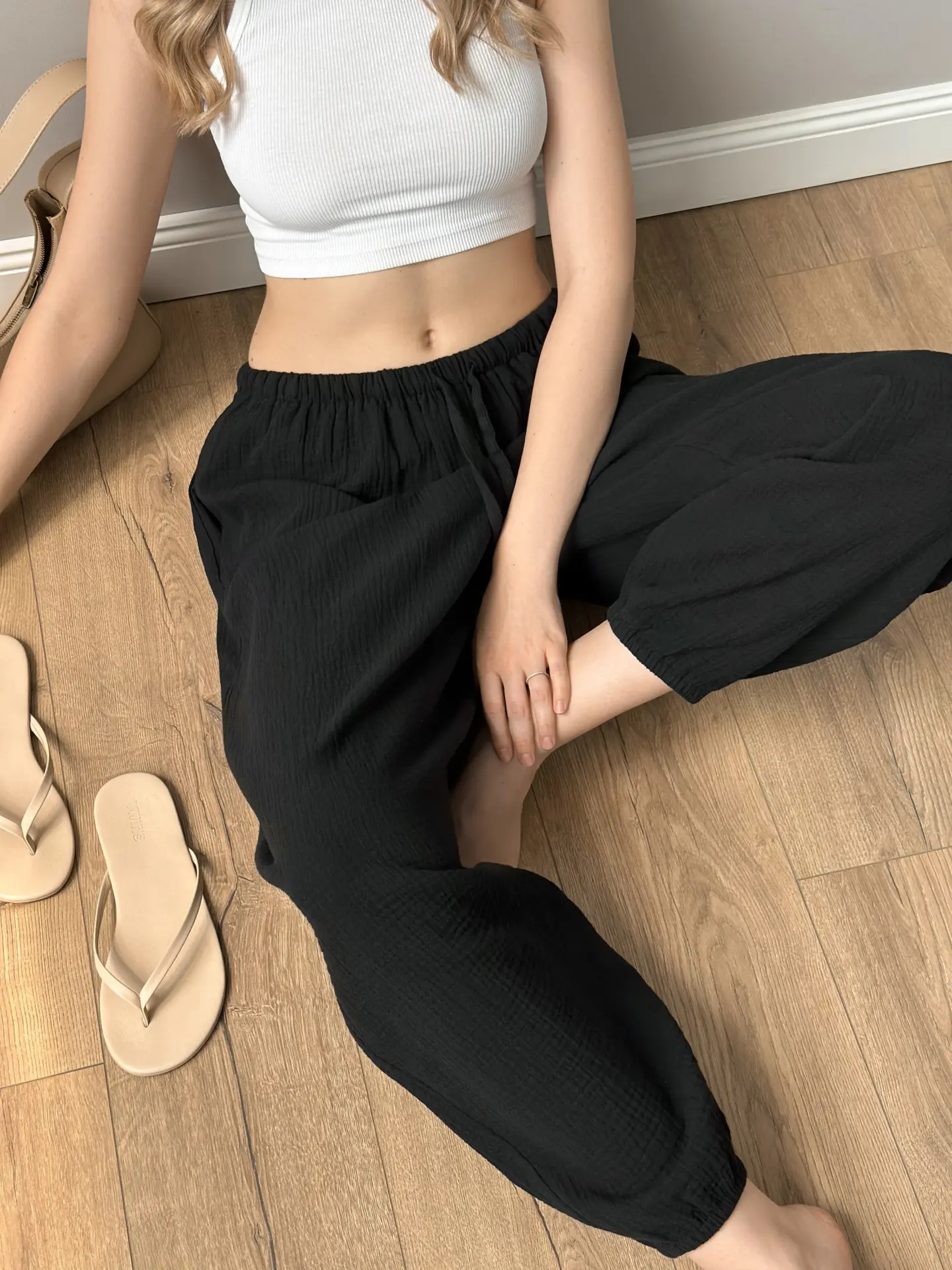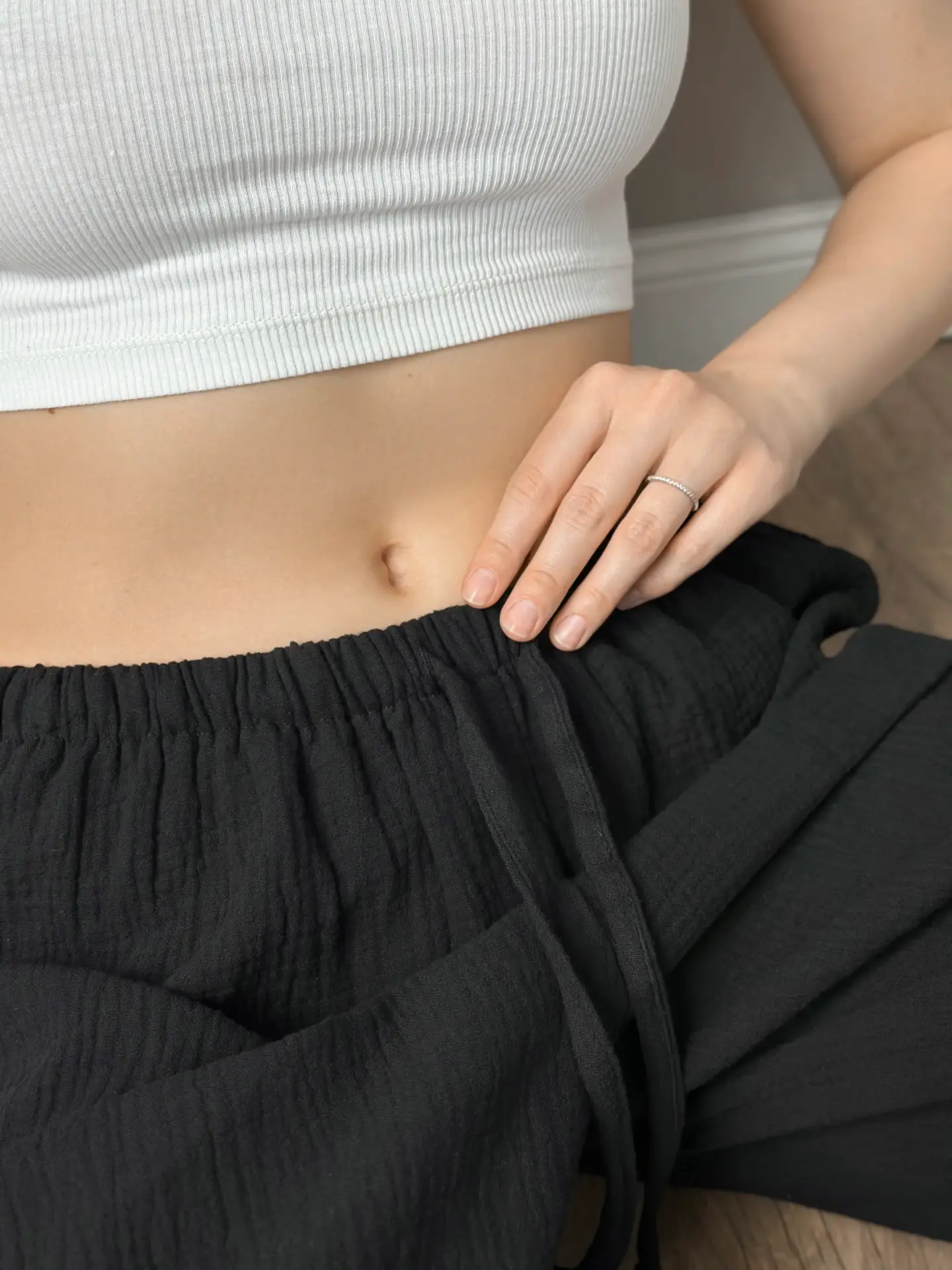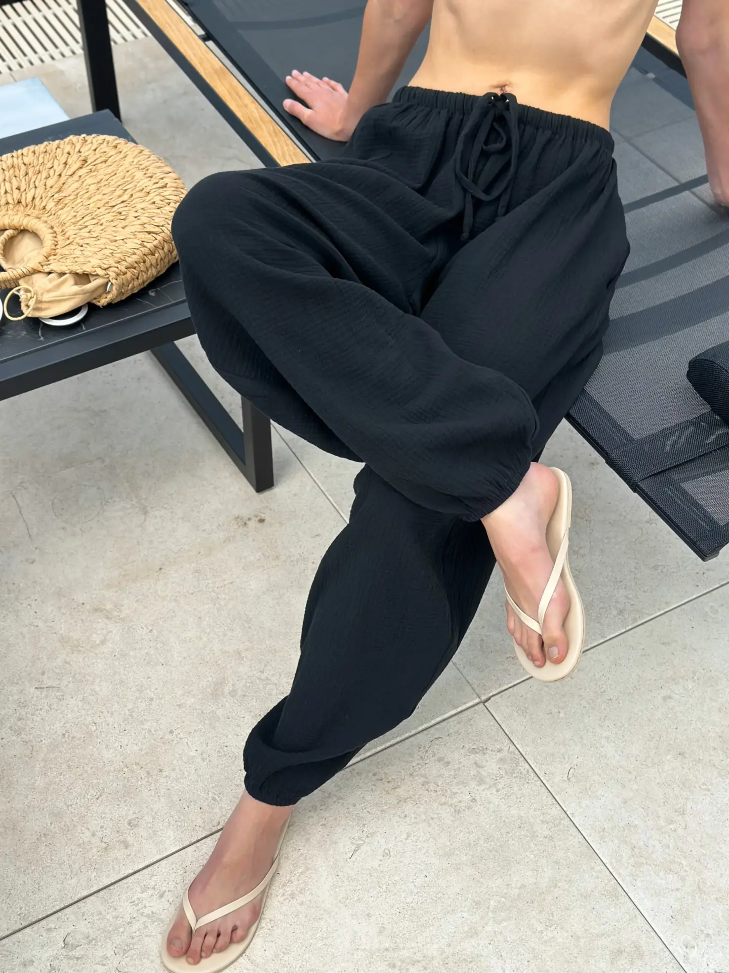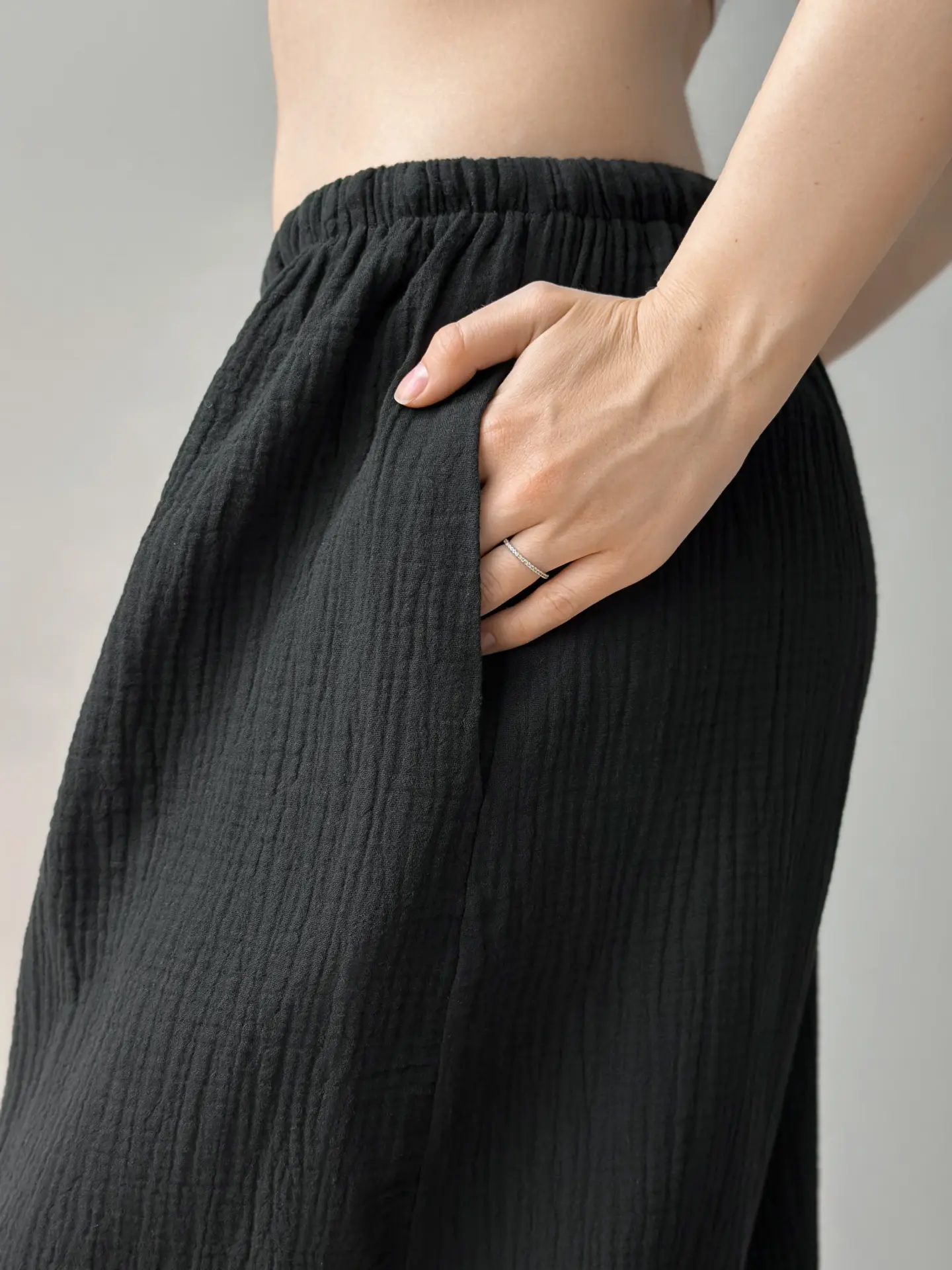 Spodnie Mono szarawary z muślinu dwuwarstwowego, czarne