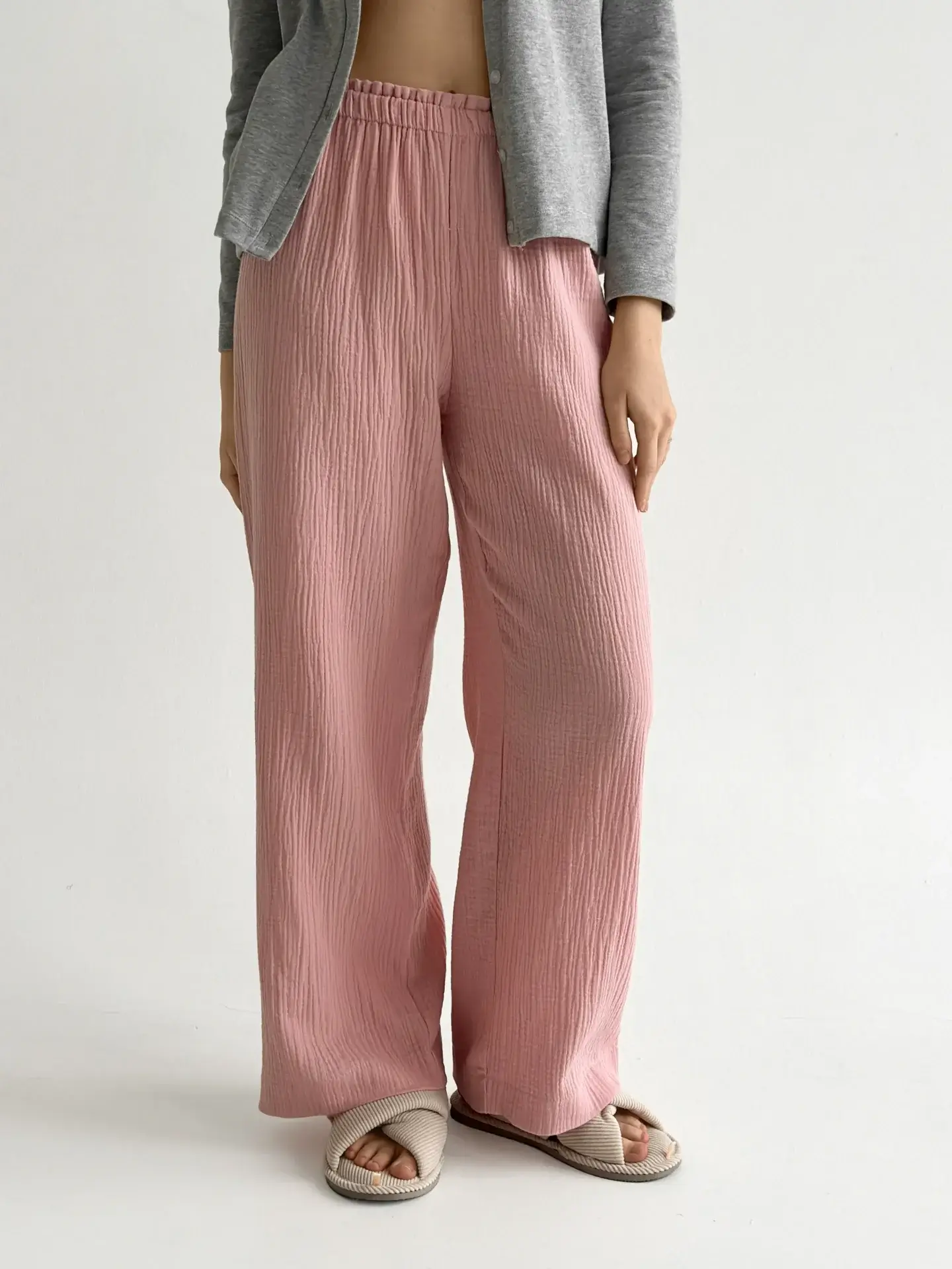 Spodnie Mono z muślinu dwuwarstwowego, różowe