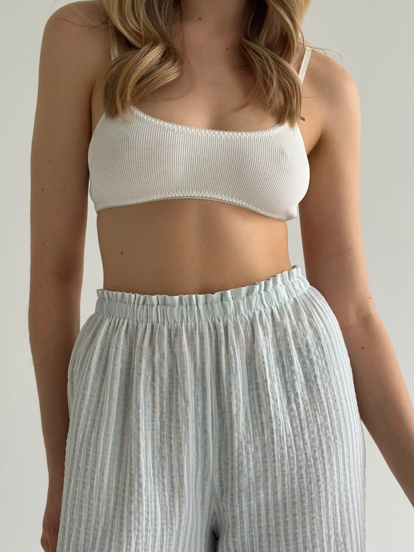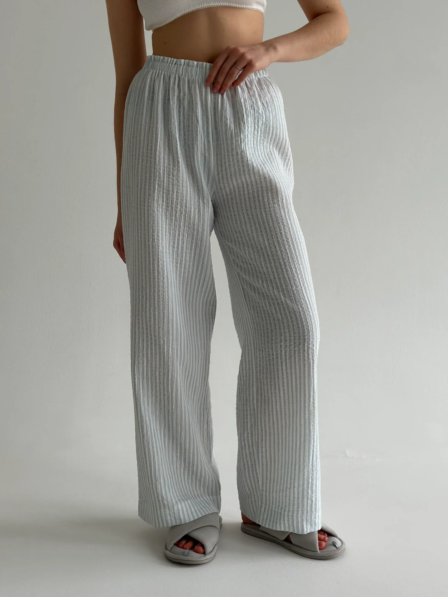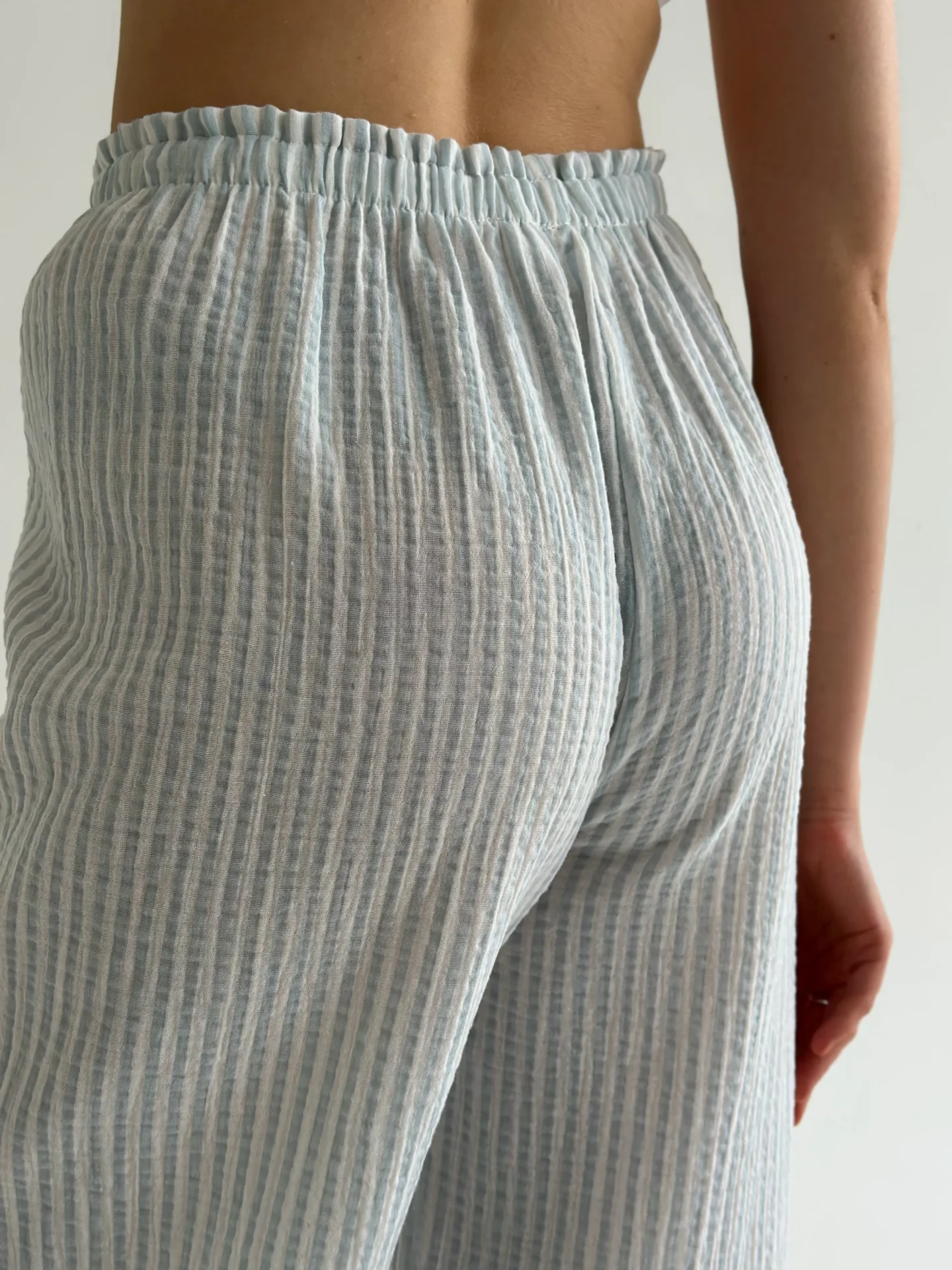 Spodnie Mono z muślinu, w szare paski