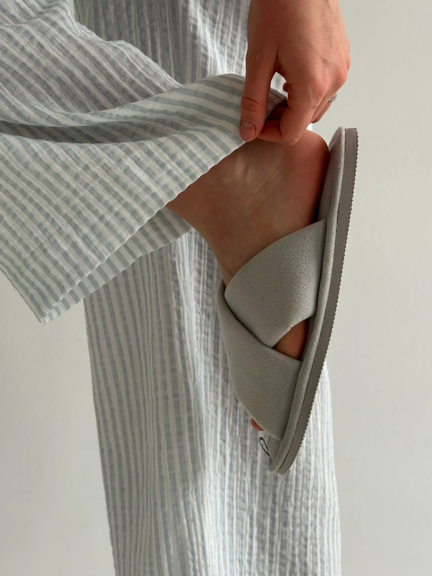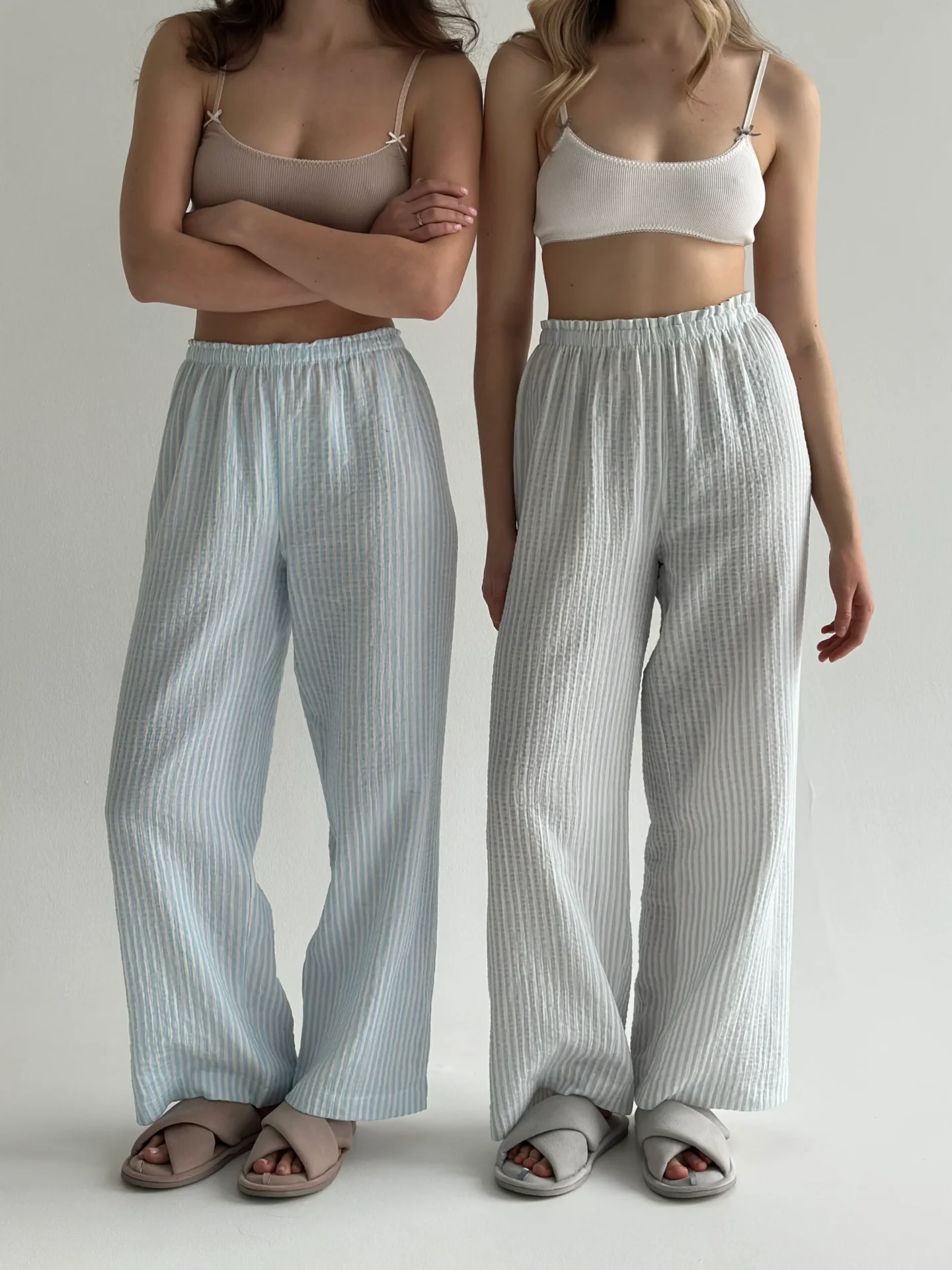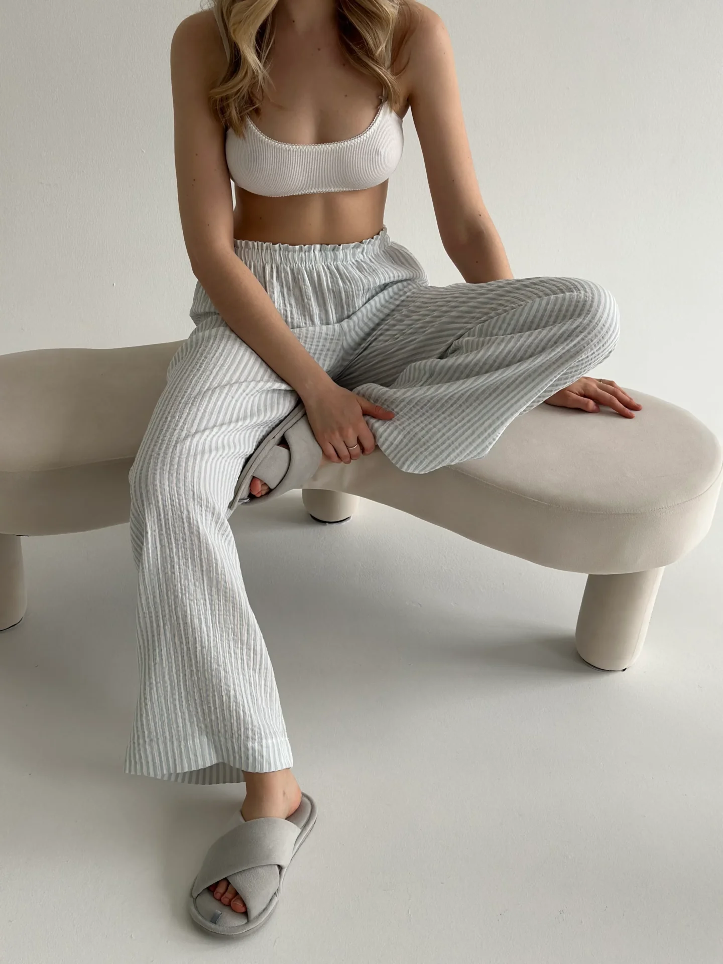 Spodnie Mono z muślinu, w szare paski