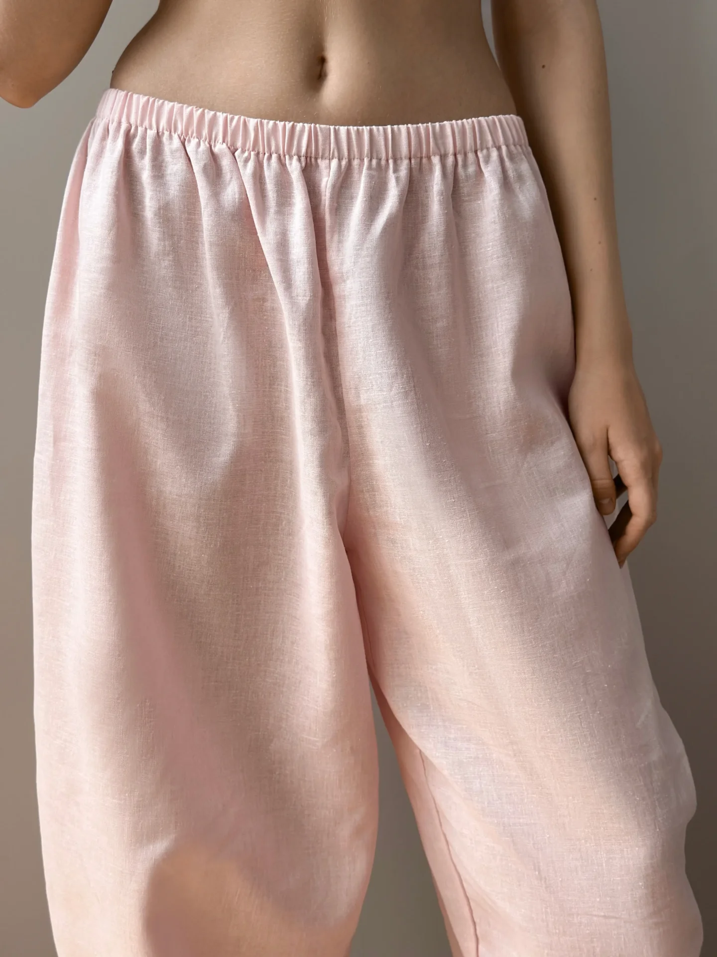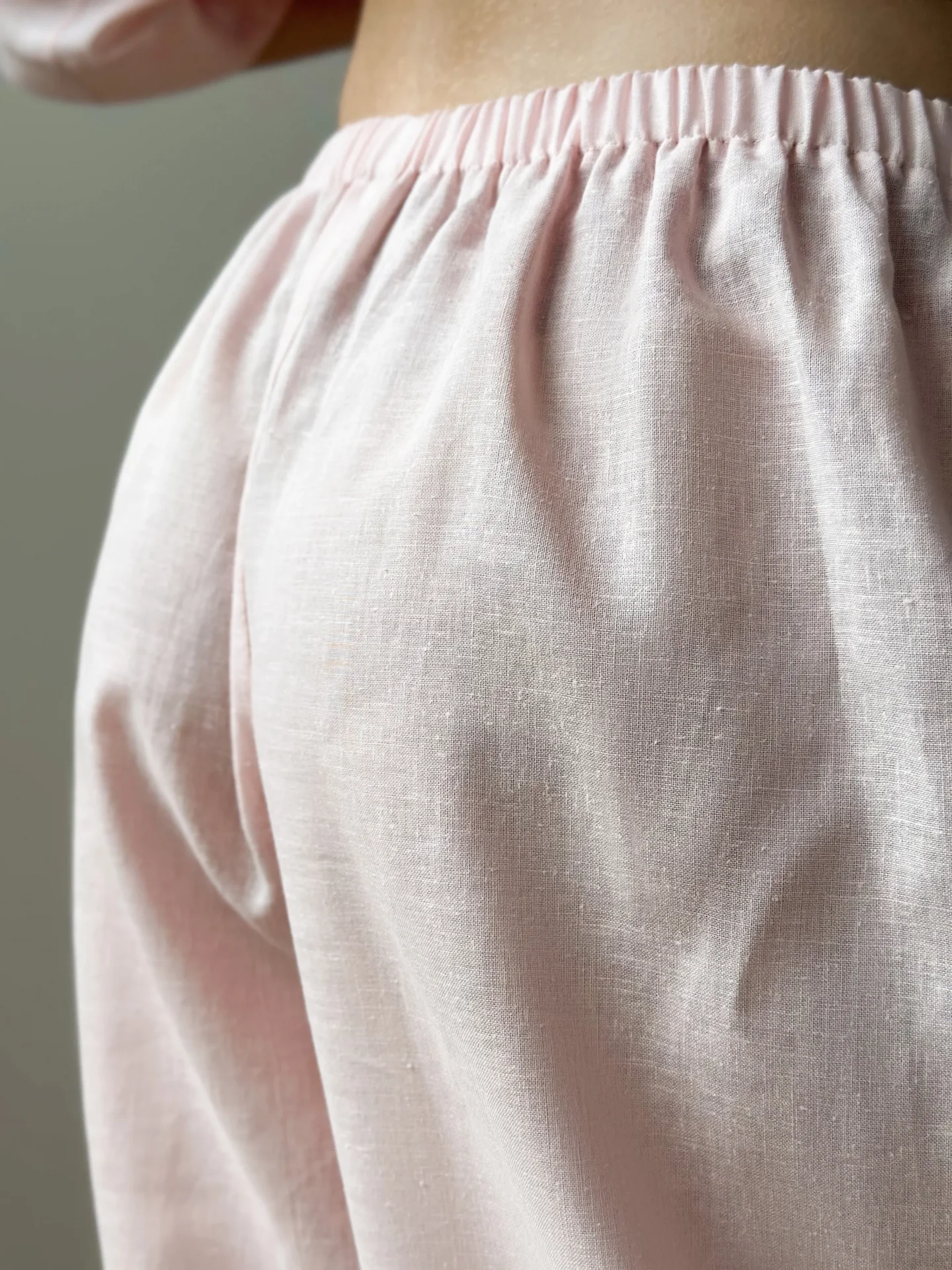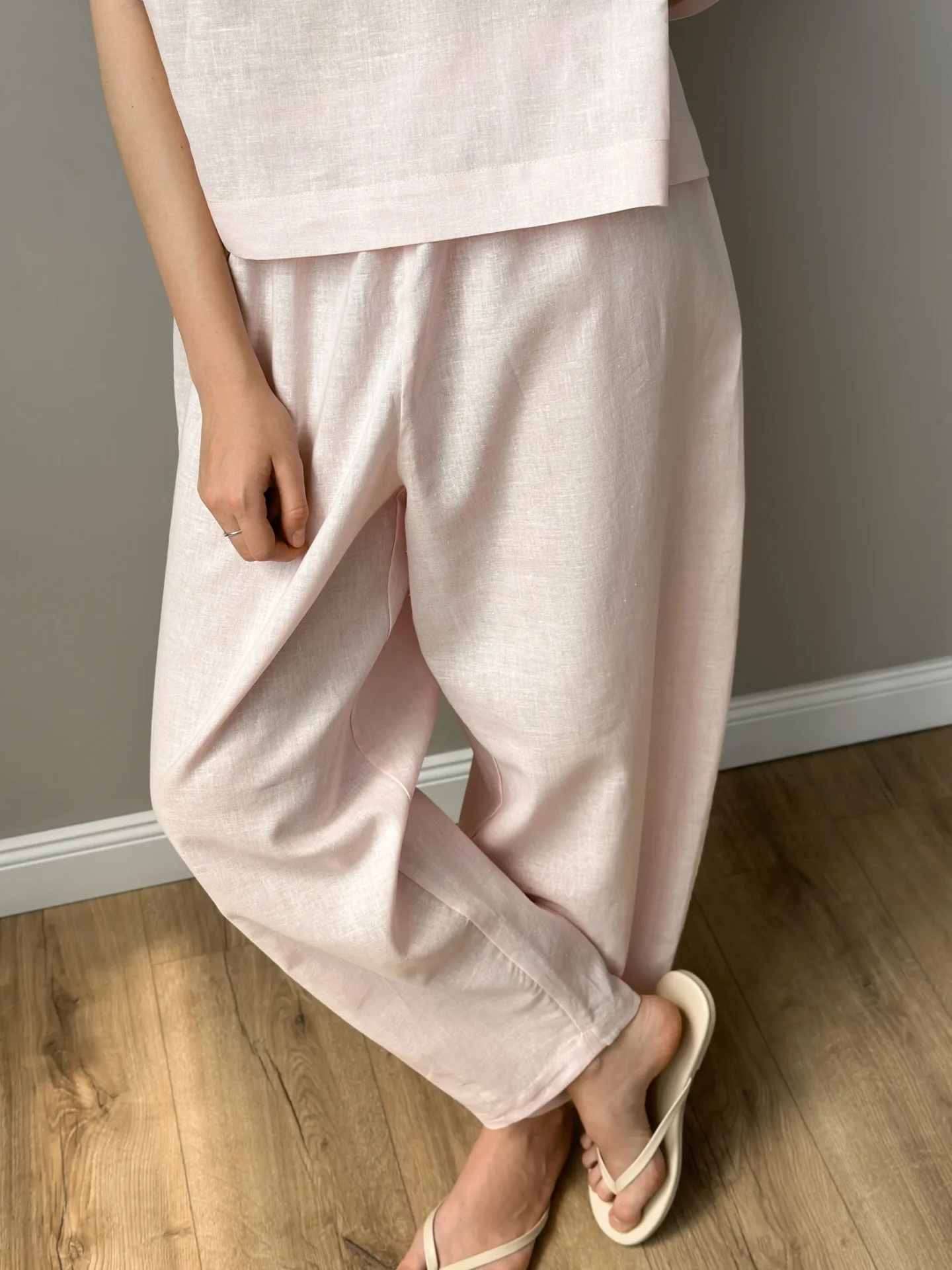Spodnie Muki z naturalnego lnu mają luźny krój i lekką strukturę, co zapewnia komfort w ciepłe dni. Len jest przyjemny w dotyku, dobrze oddycha i nadaje stylizacji naturalnej prostoty. Dzięki minimalistycznemu designowi spodnie łatwo łączyć z różnymi wariantami góry i są idealne do codziennych stylizacji, spacerów i odpoczynku.