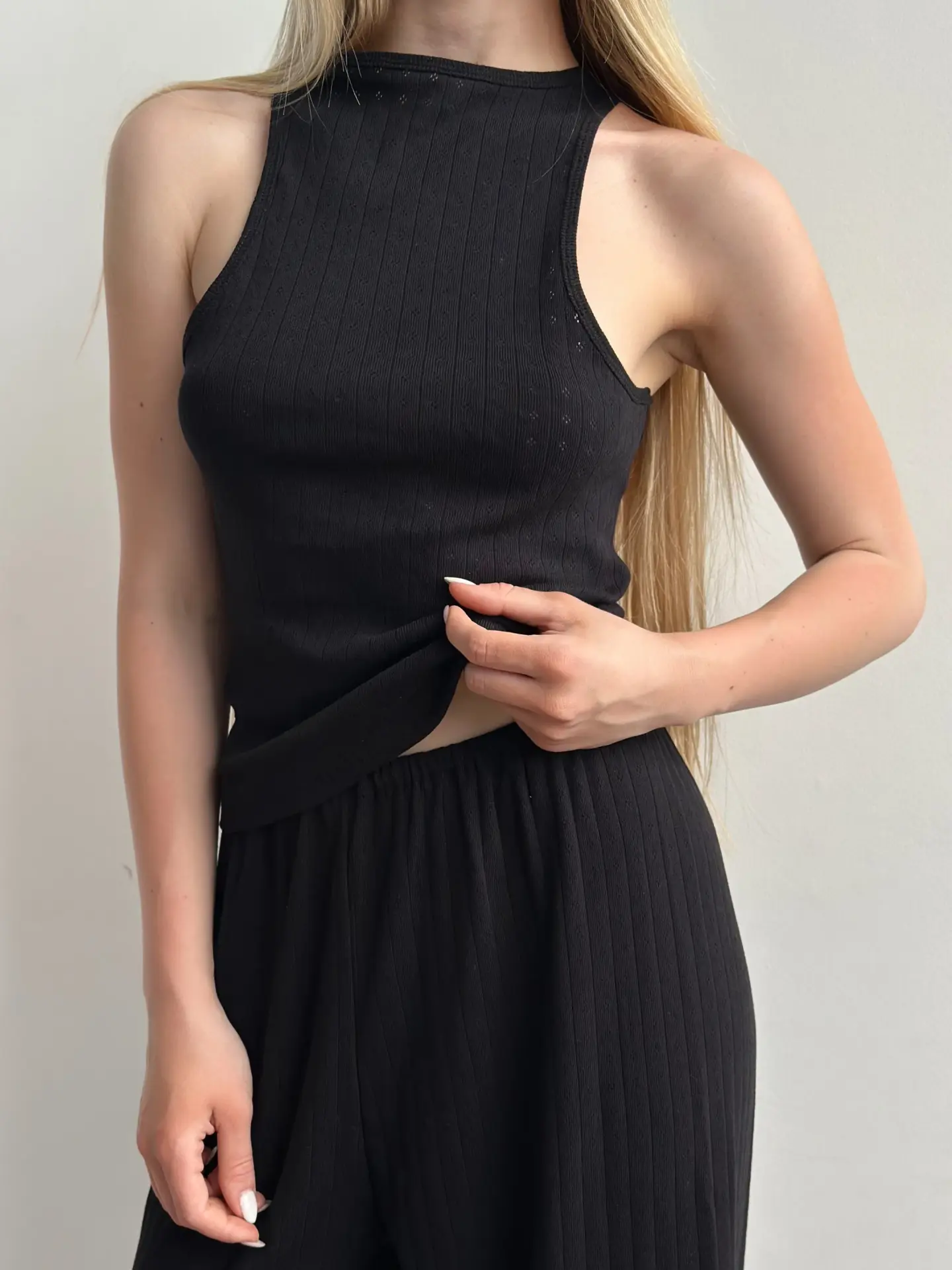Spodnie szerokie z ribany prążkowanej, czarne