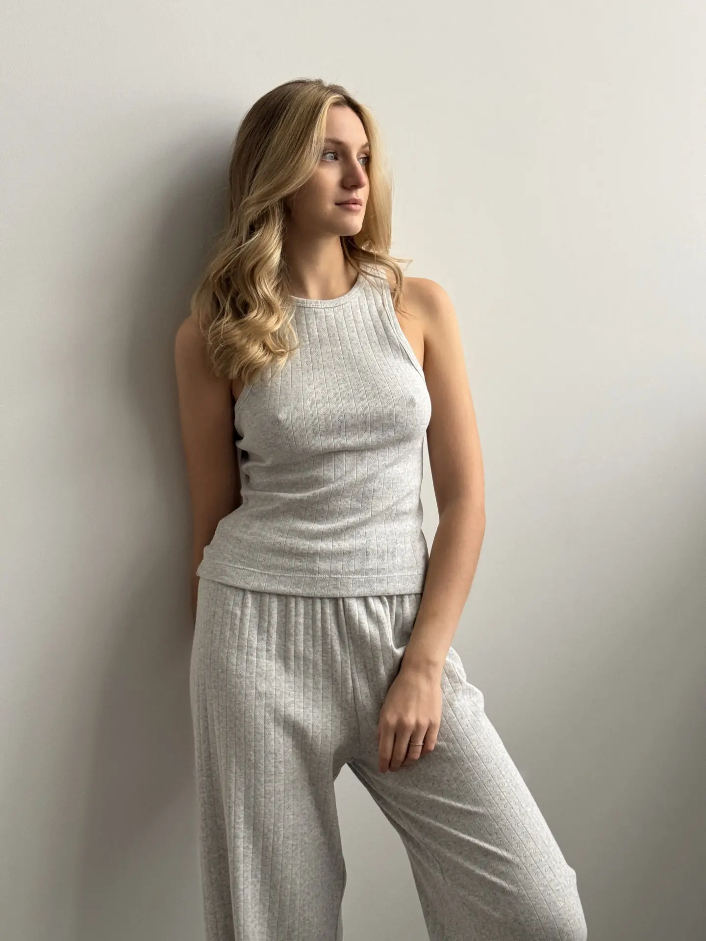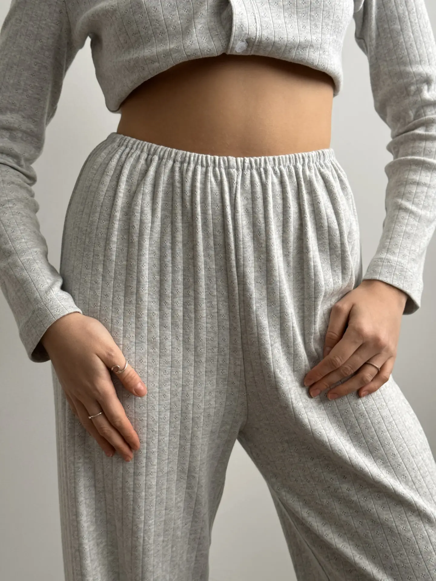 Spodnie szerokie z ribany prążkowanej, jasnoszare