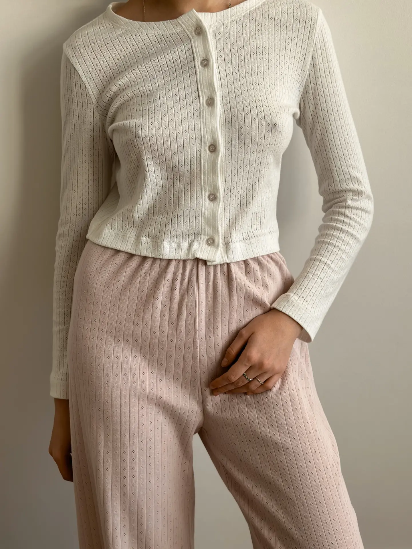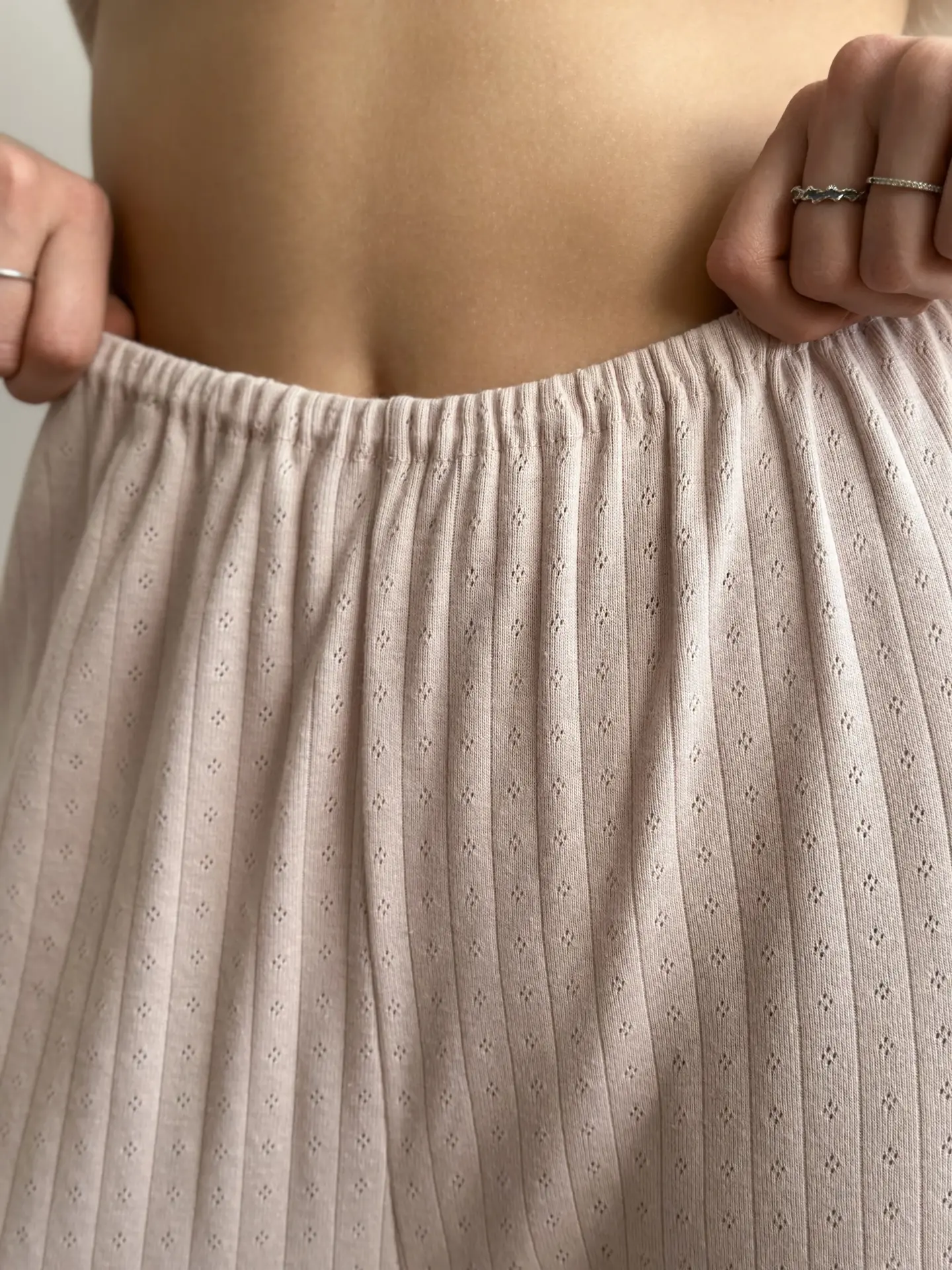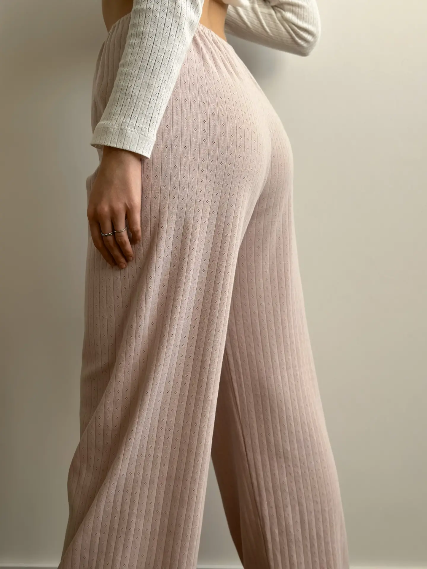 Spodnie szerokie z ribany prążkowanej, pudrowe
