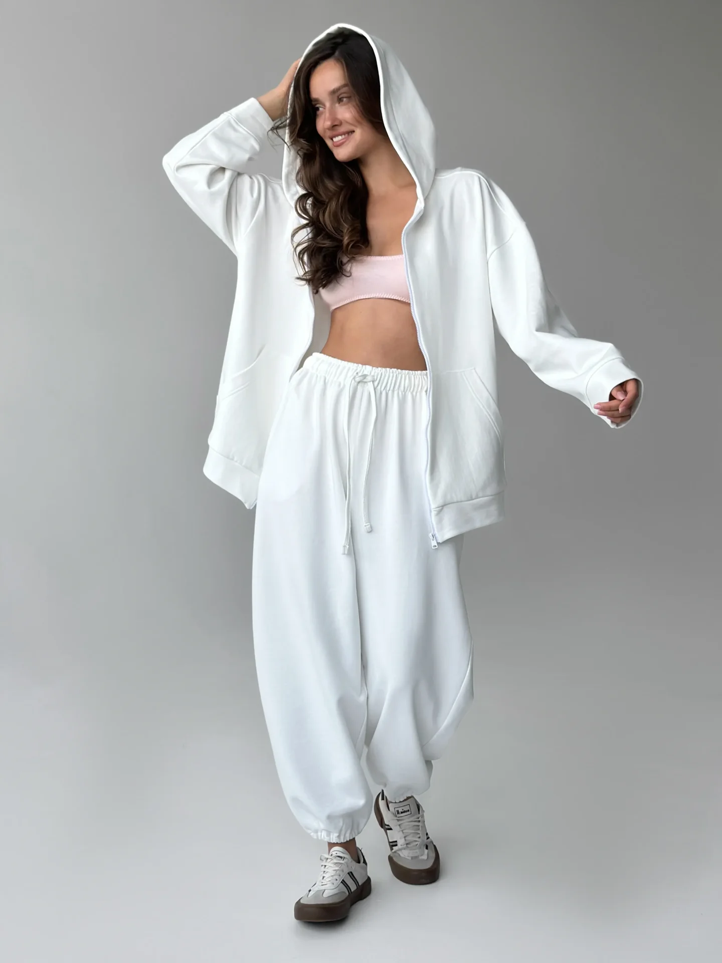 Spodnie z dzianiny 3-nitkowej, białe