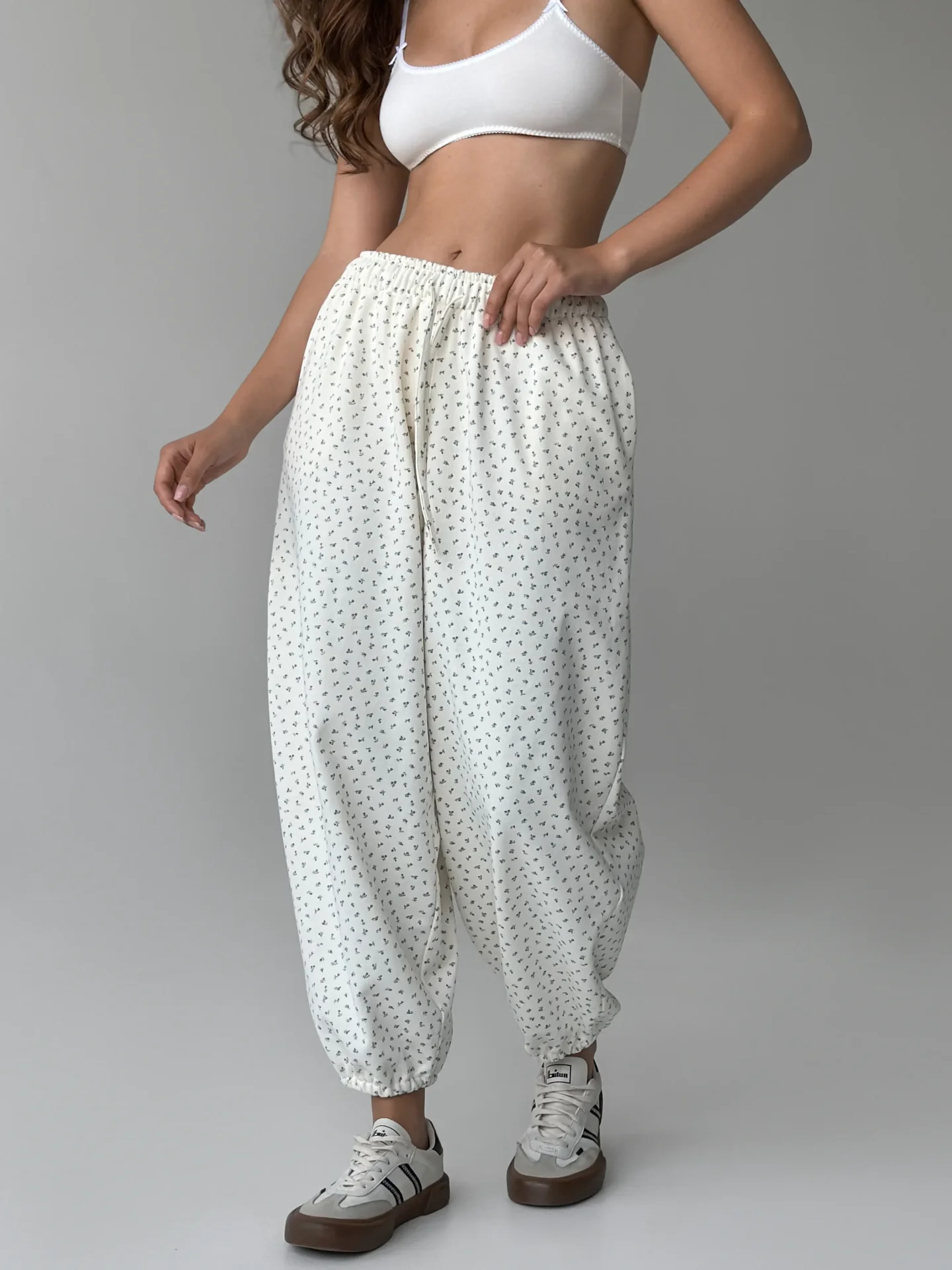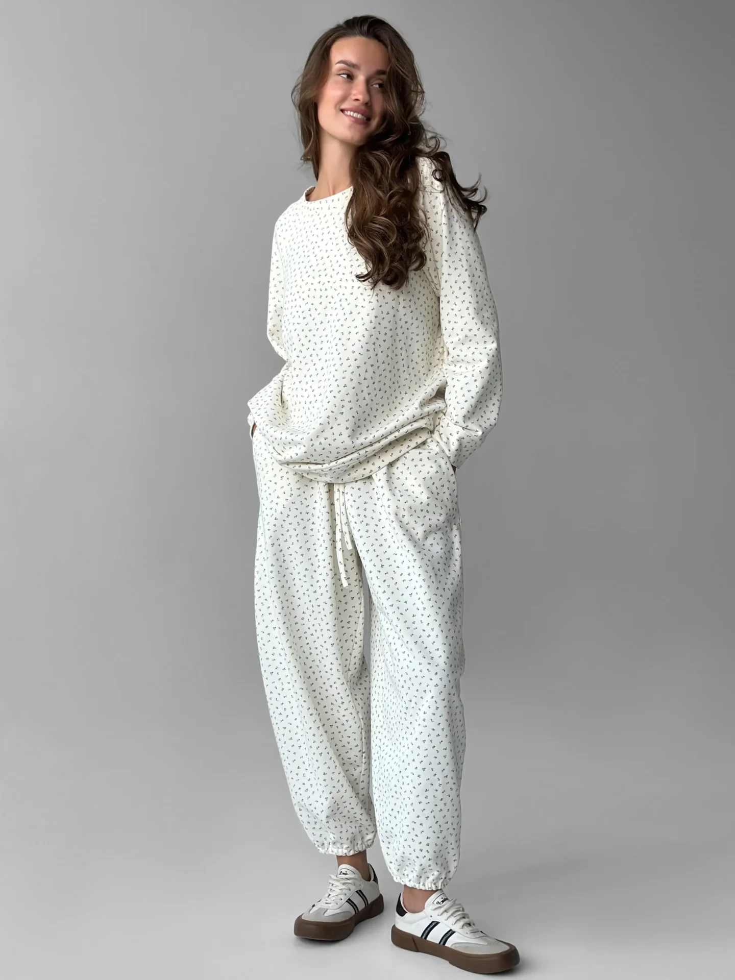 Spodnie z bawełnianej dzianiny na bazie miękkiej 3-nitki. Komfortowe, ciepłe i przyjemne dla skóry — idealne na co dzień i na spacery. Uniwersalny wybór na chłodniejsze dni.