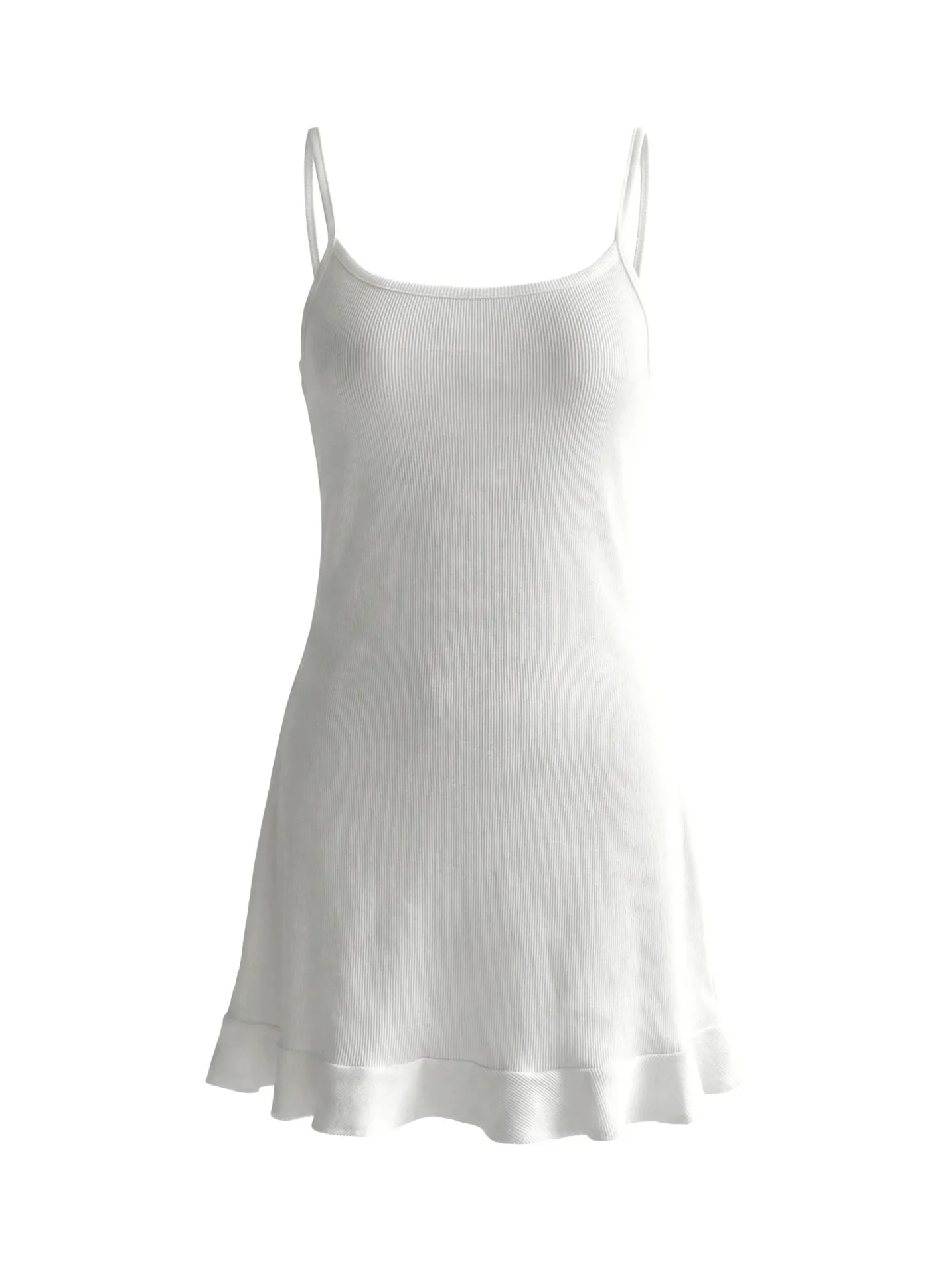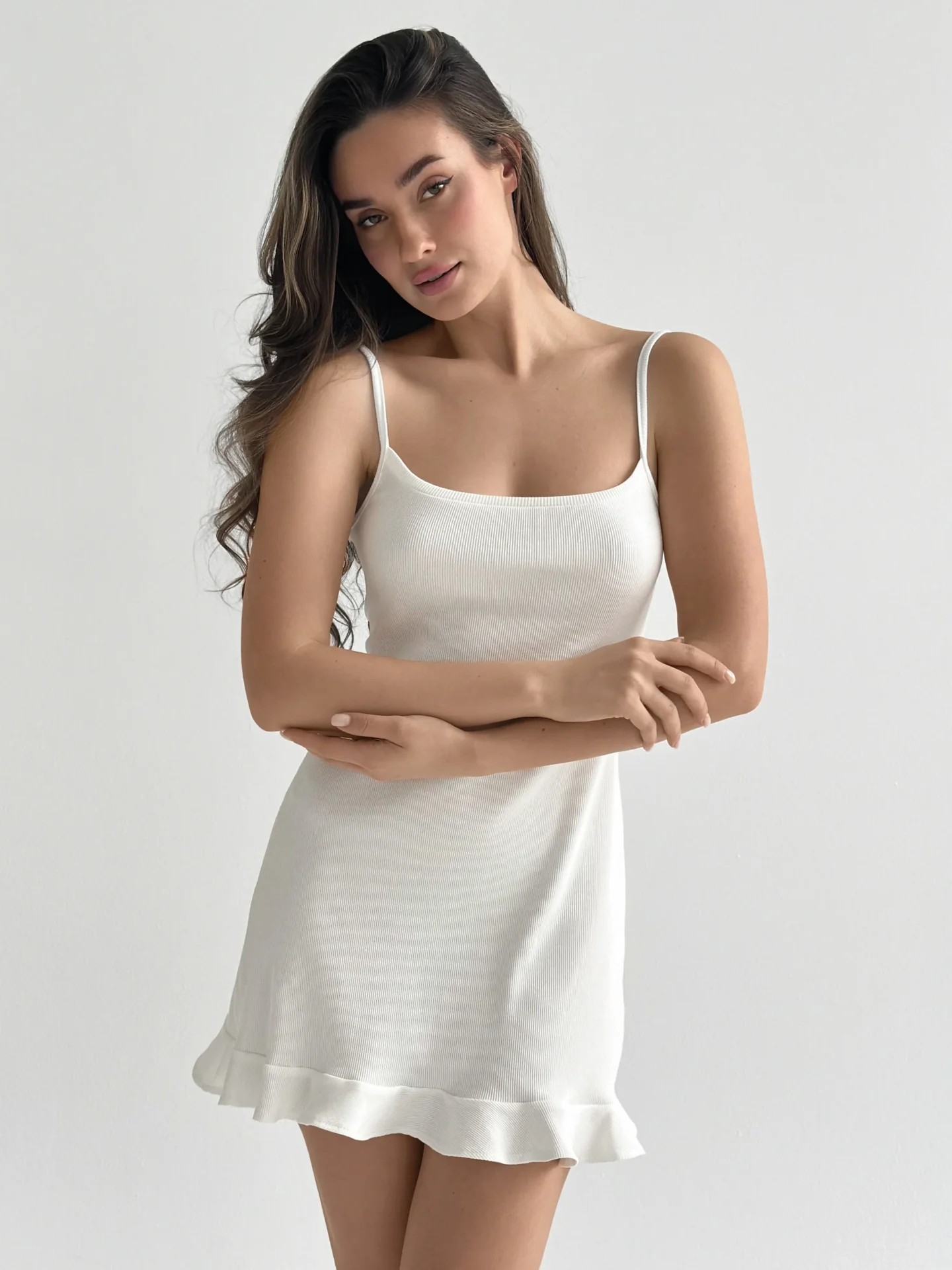 Sukienka nocna z falbankami, z dzianiny prążkowanej, mleczna