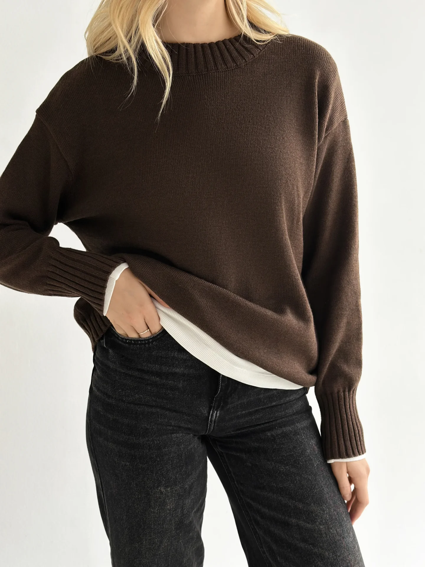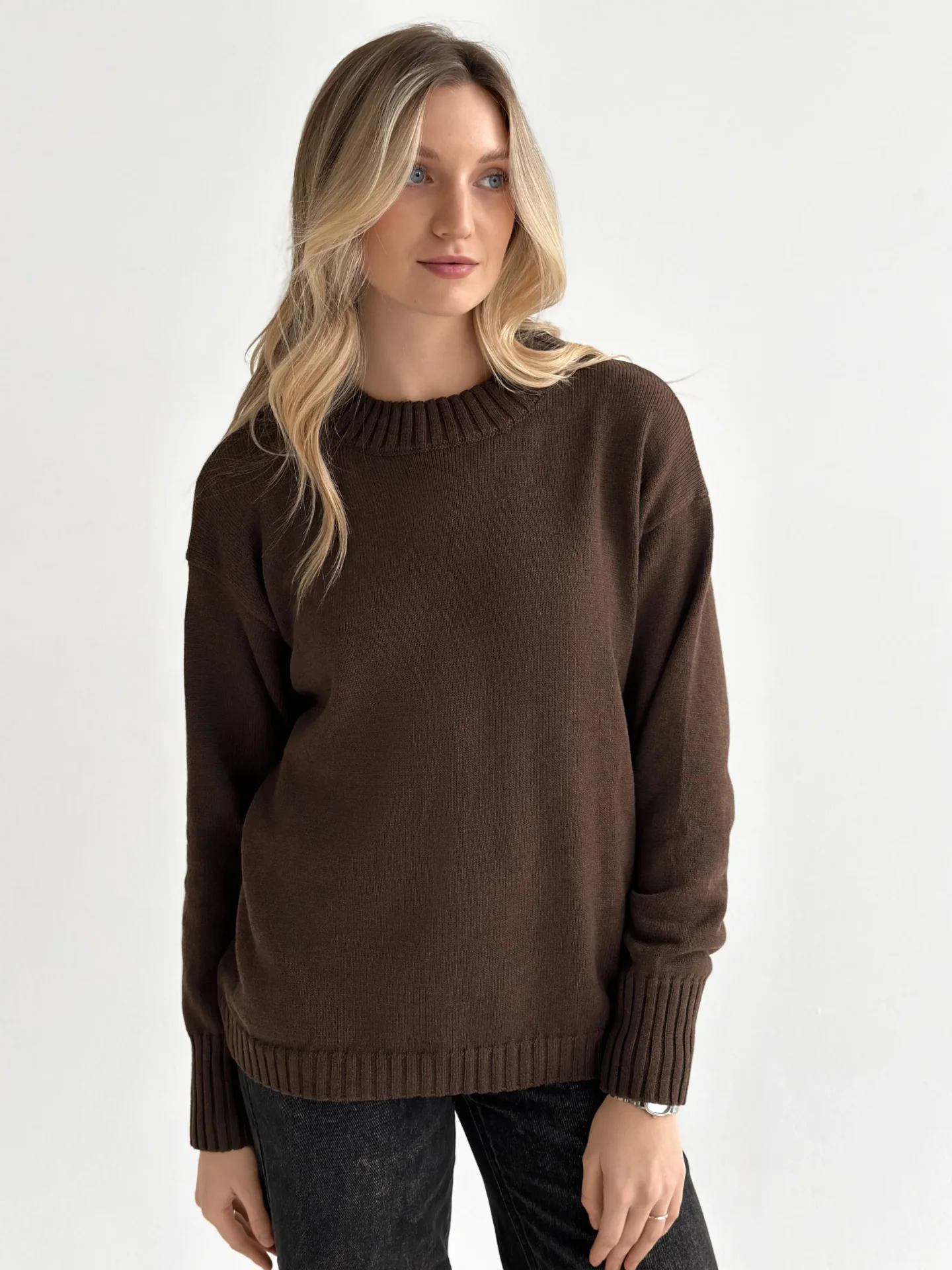 Sweter dziany, brązowy
