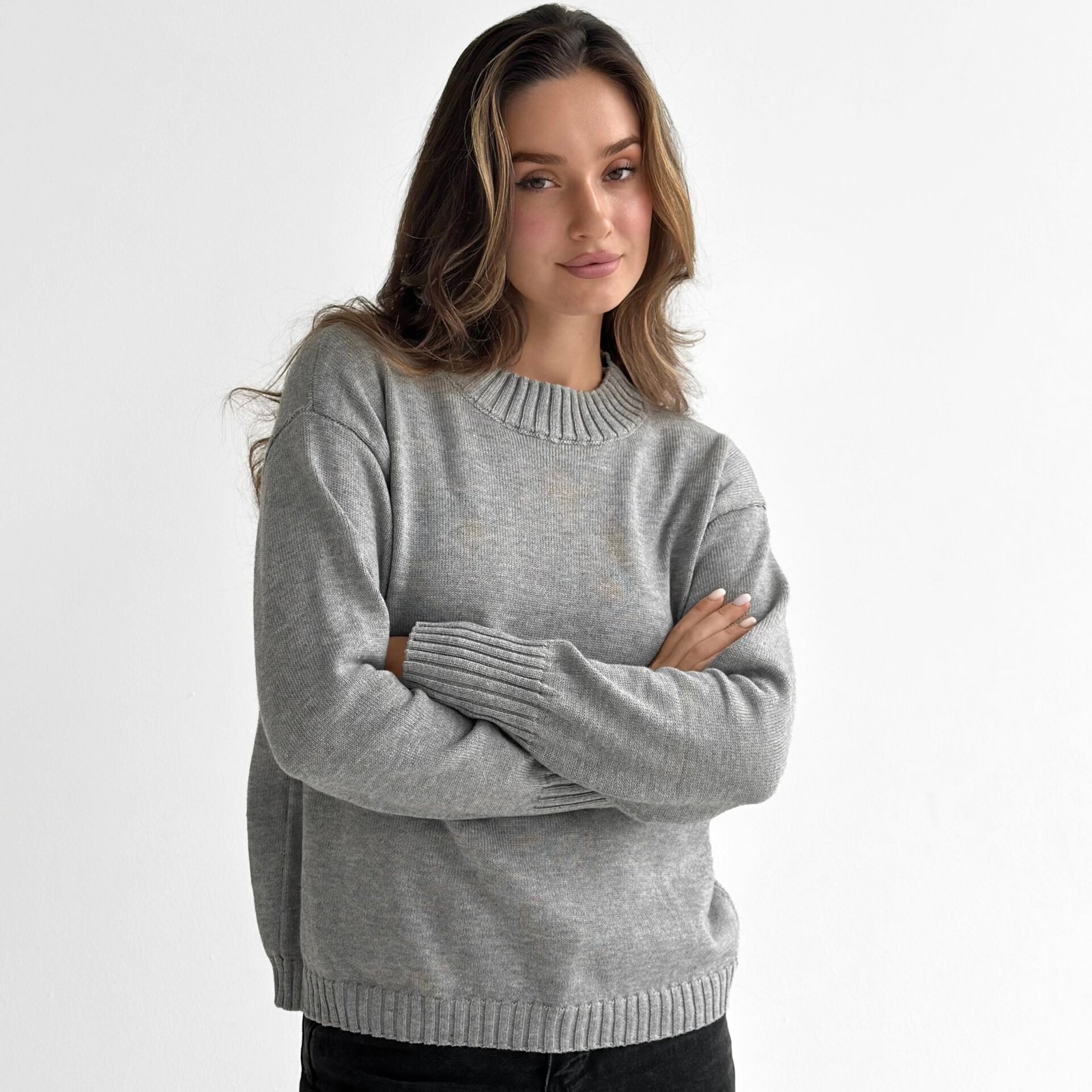 Sweter dziany, szary - Miso