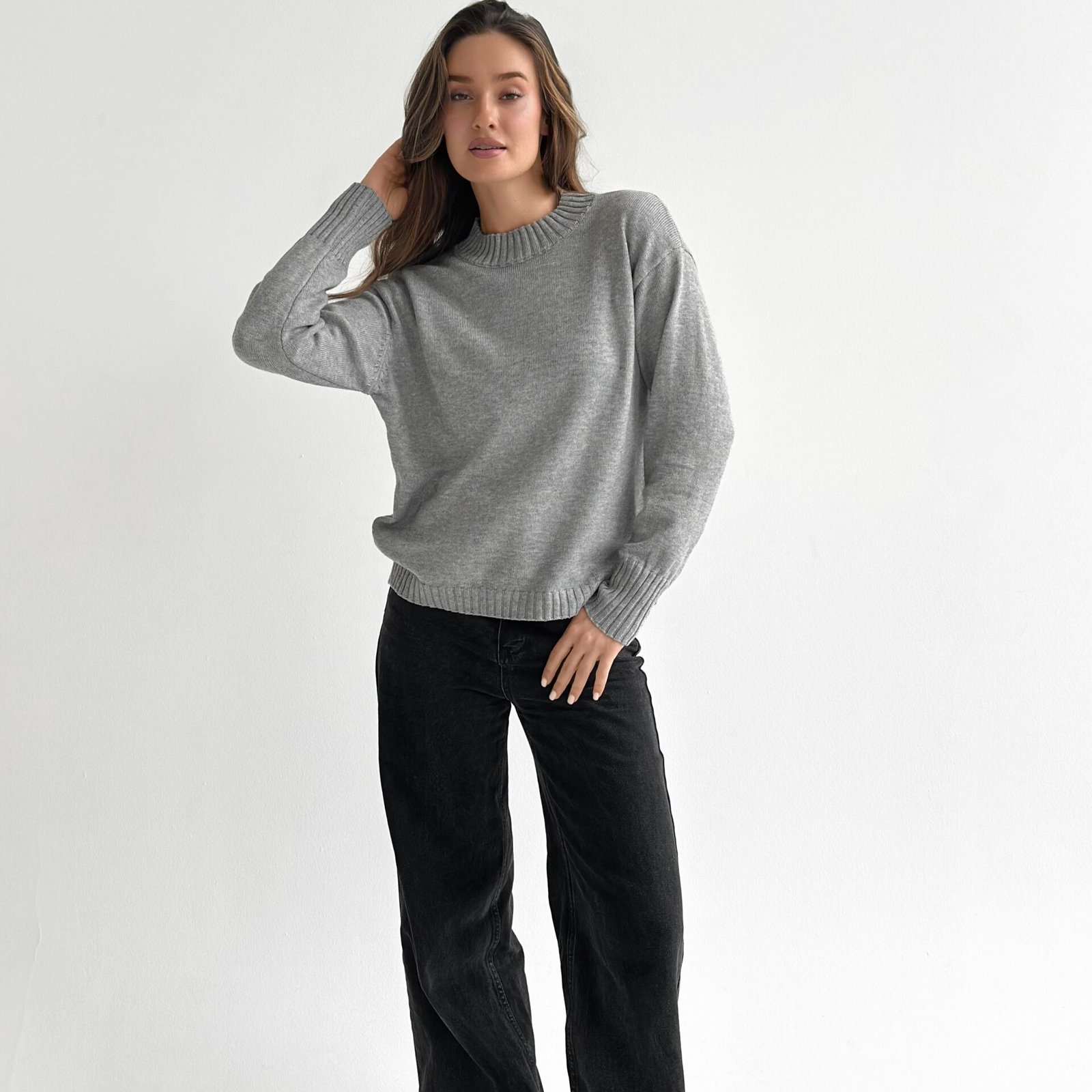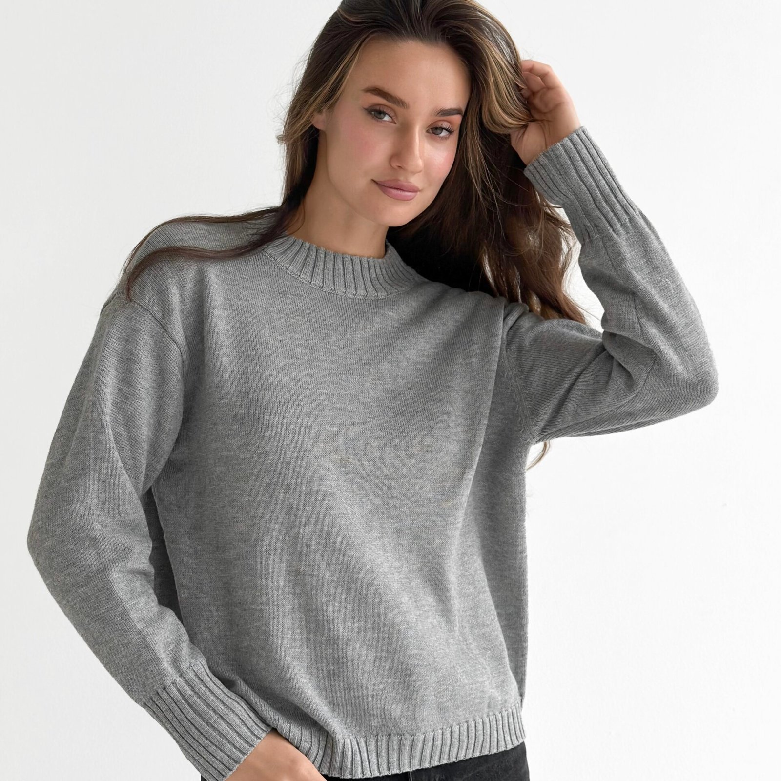 Sweter dziany stworzony dla ciepła i codziennego komfortu. Miękka przędza przyjemnie otula, a minimalistyczny design sprawia, że model jest uniwersalny do różnych stylizacji. Idealny wybór na przytulne dni i stylowe, codzienne looki.