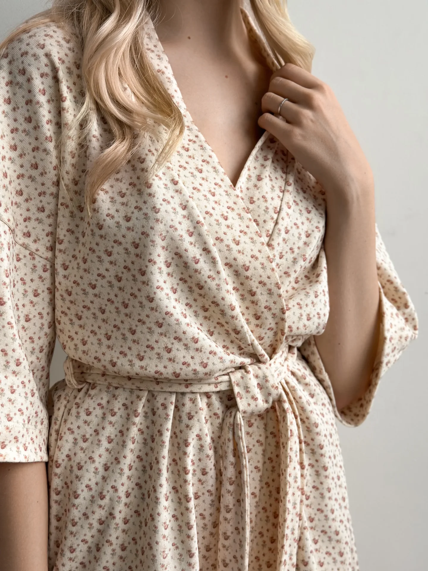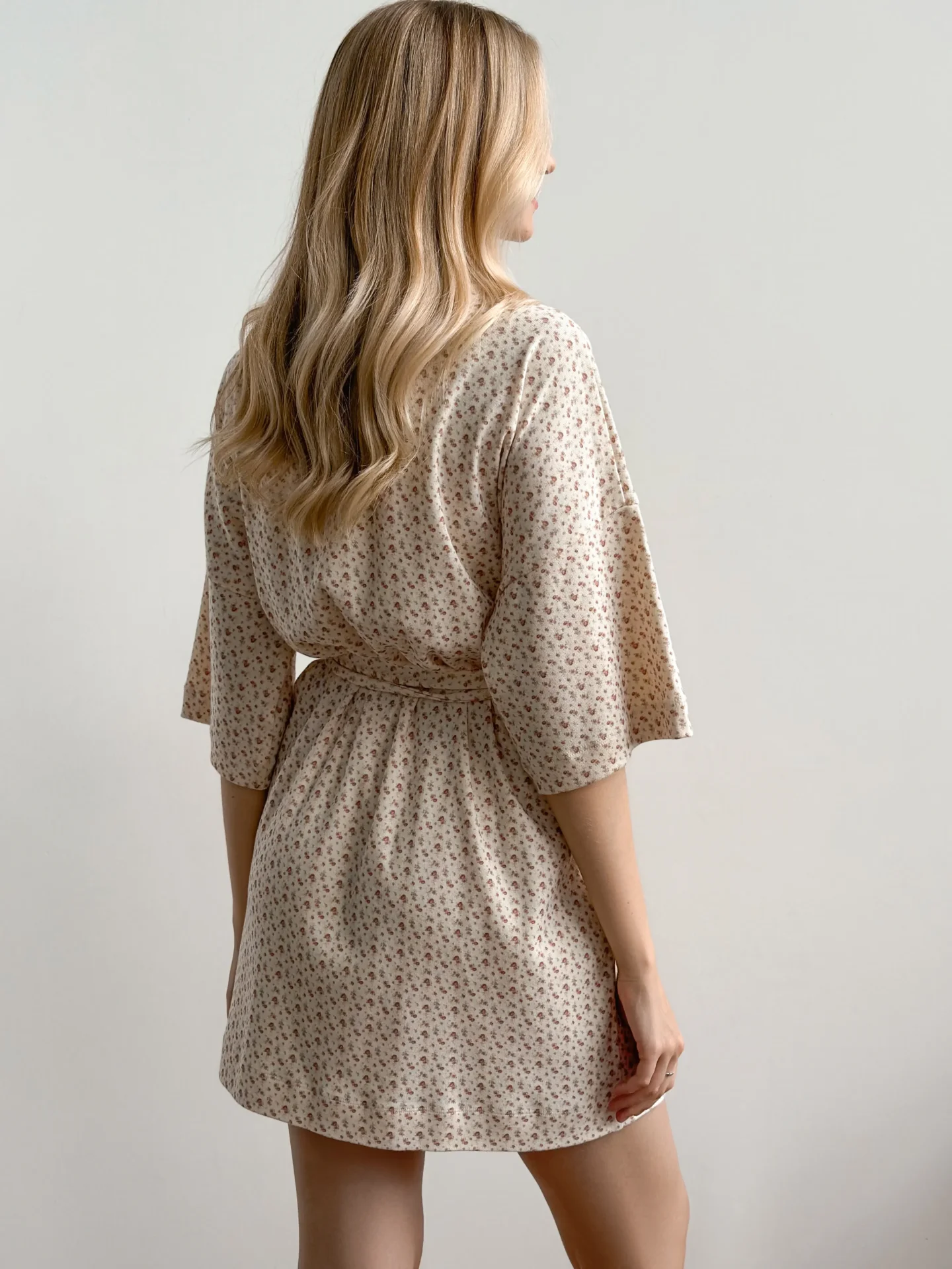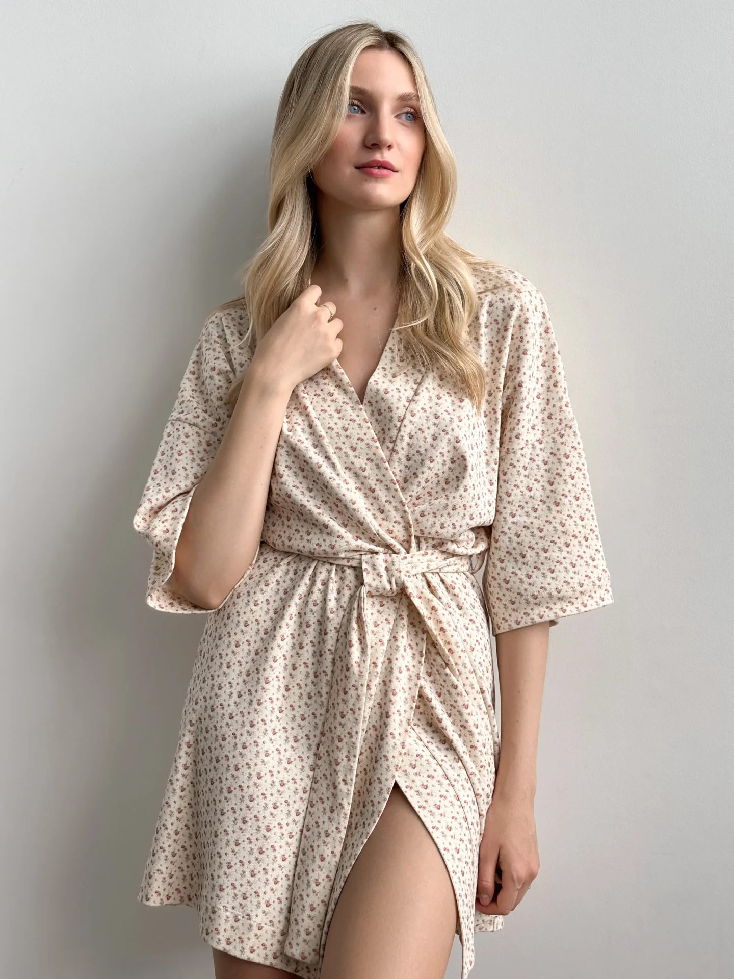 Szlafrok z ribany łączy w sobie miękkość i wygodę do codziennego noszenia. Elastyczna dzianina jest przyjemna dla ciała i zapewnia swobodę ruchów. Delikatny odcień nadaje stylizacji spokój i przytulność.