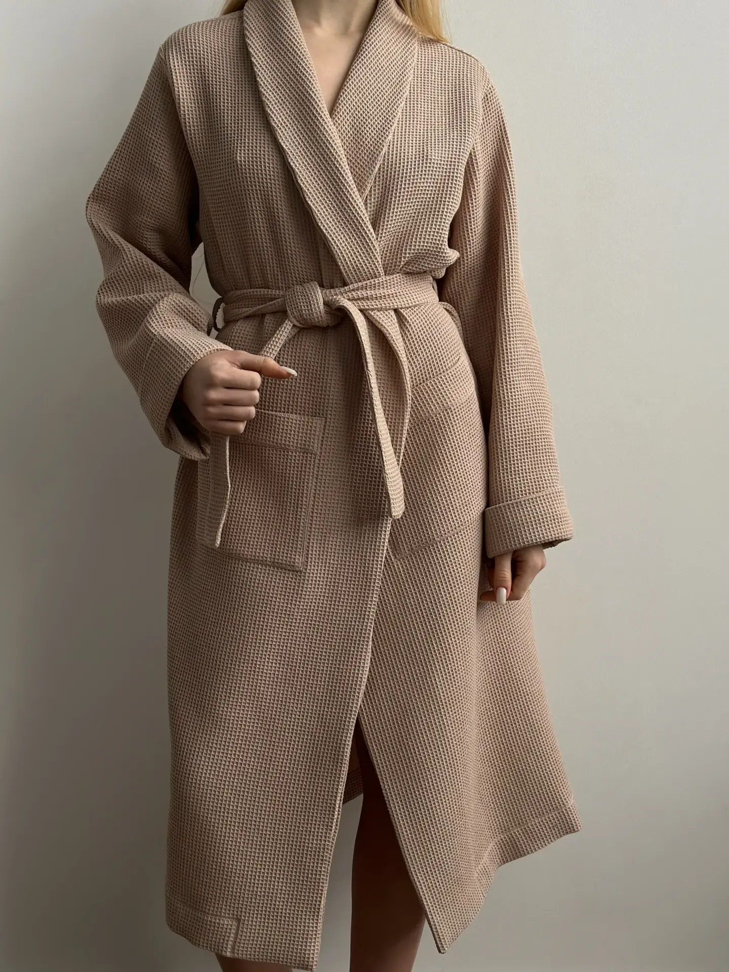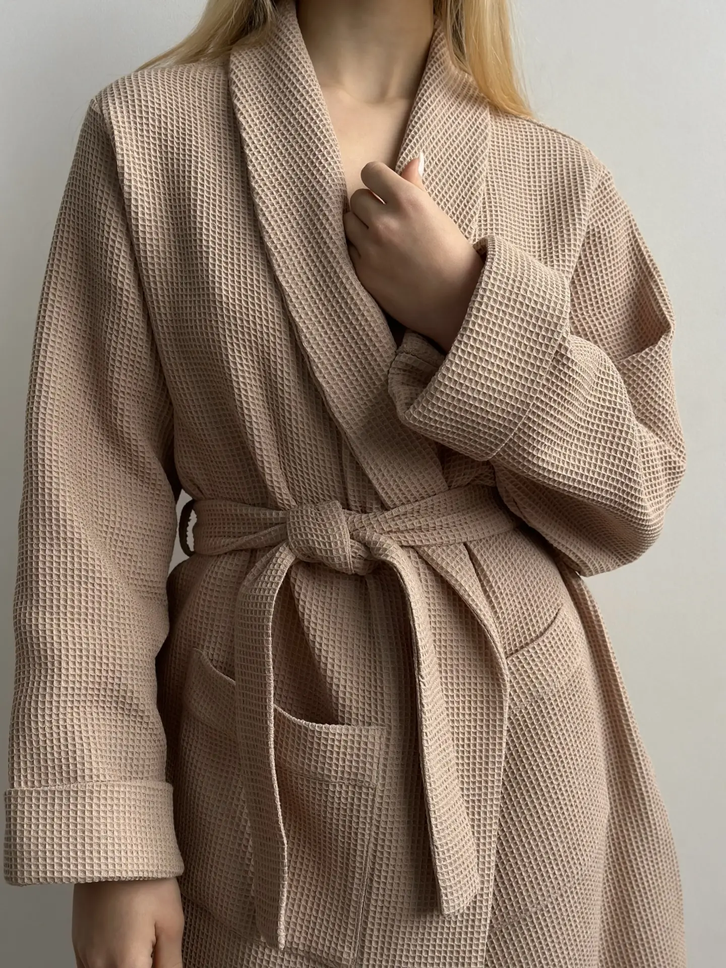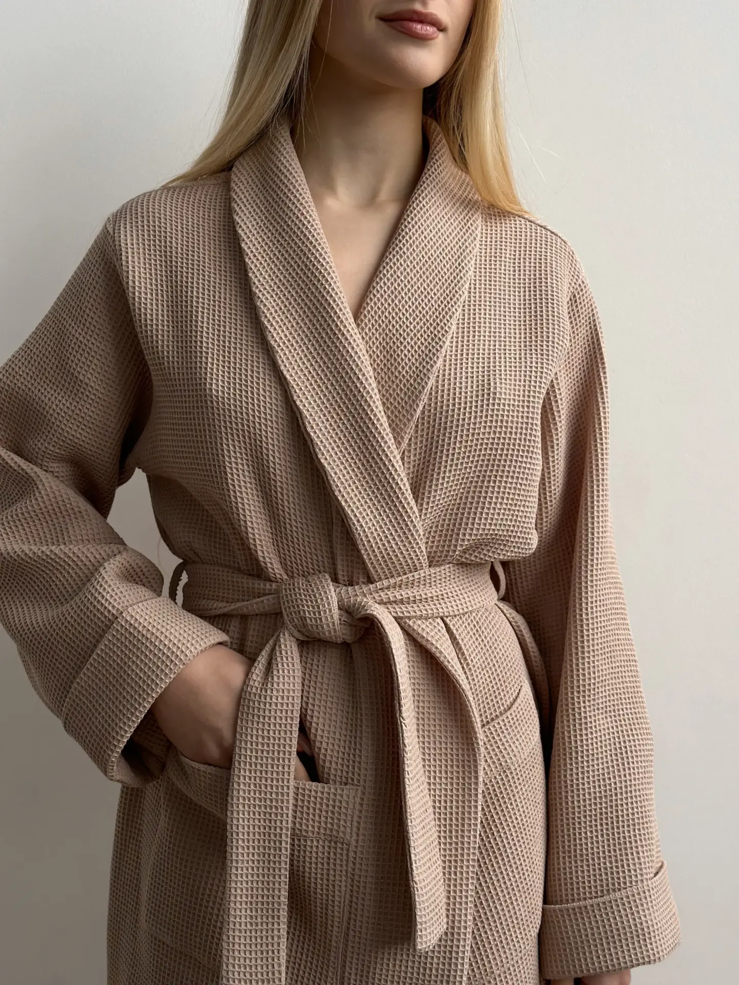 Szlafrok z tkaniny waflowej, beżowy