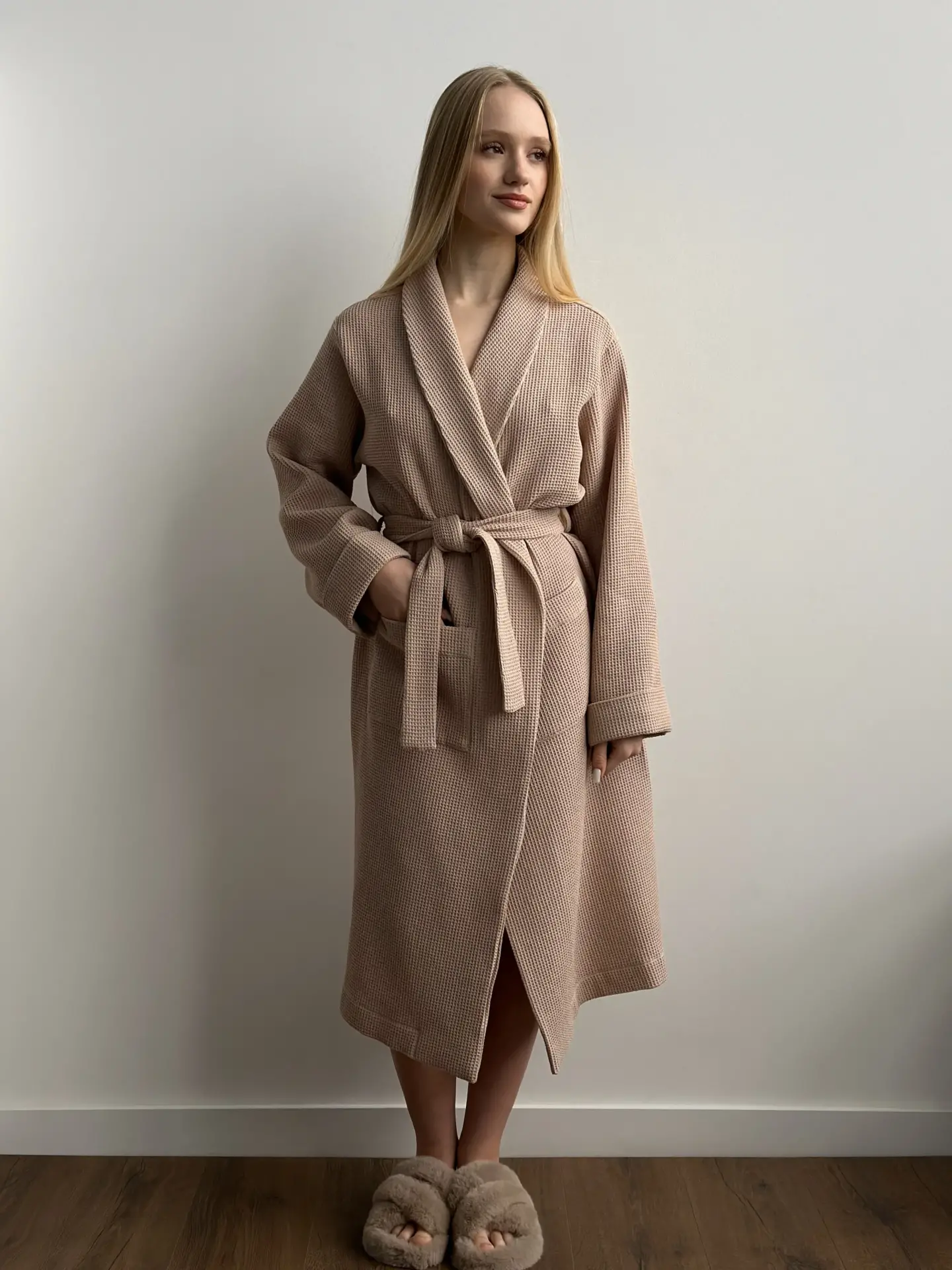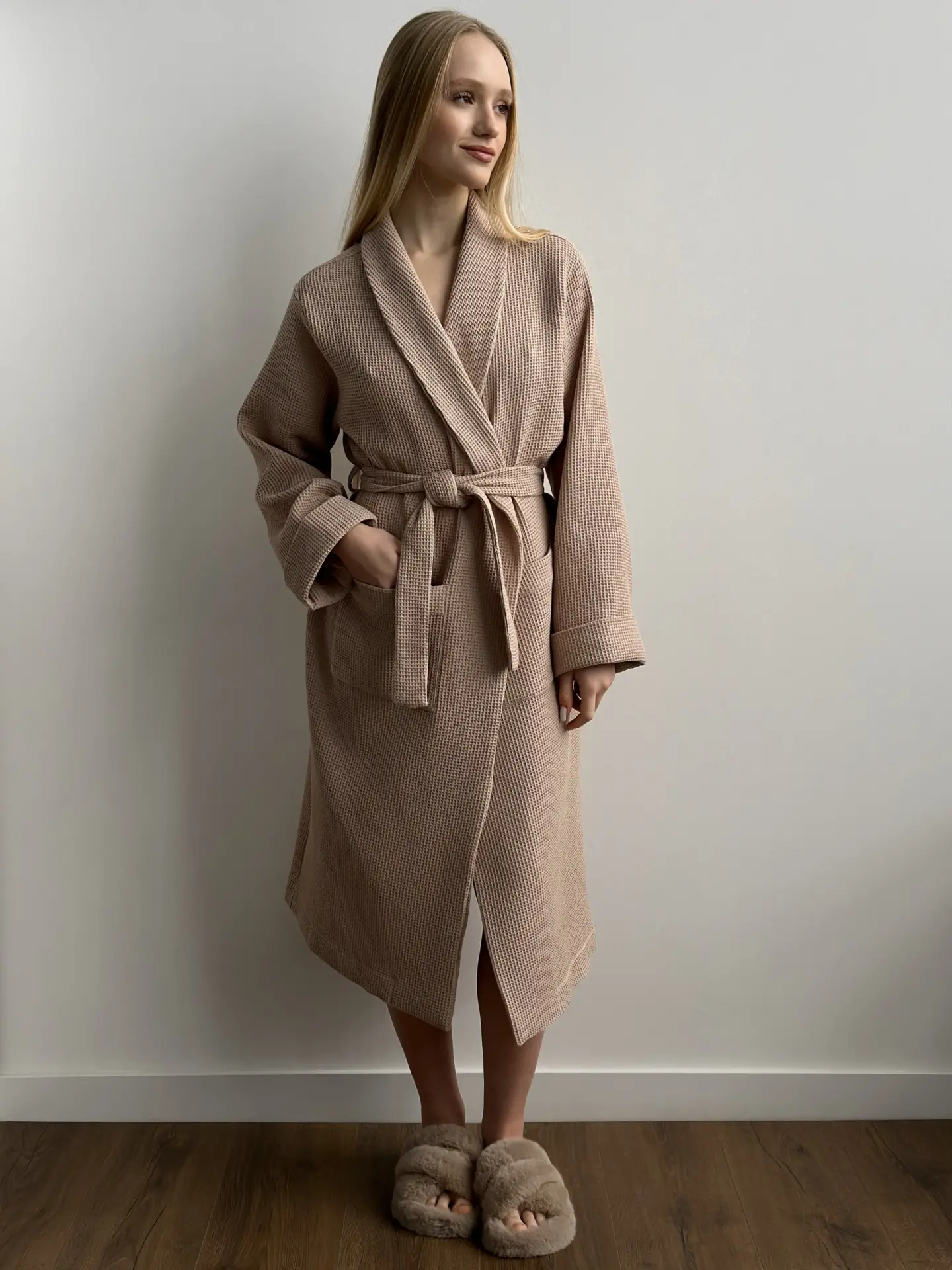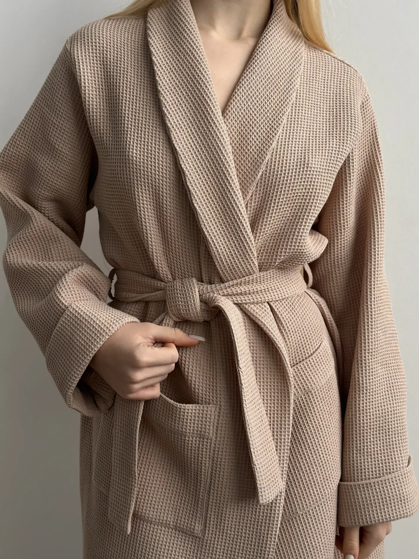 Szlafrok z tkaniny waflowej, beżowy