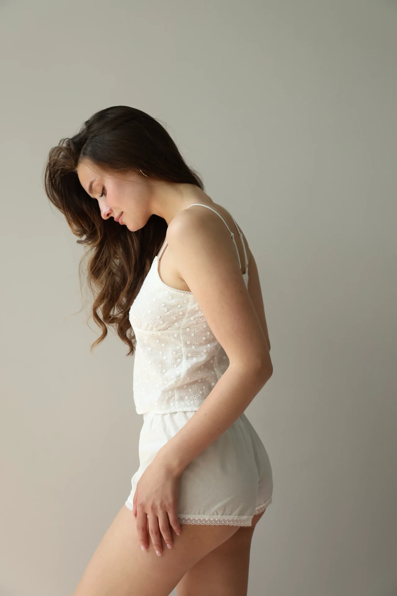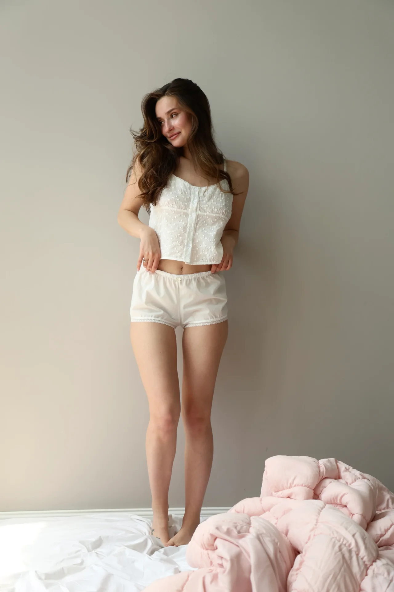 Szorty Mono z koronką, z batystu jednolitego, mleczne