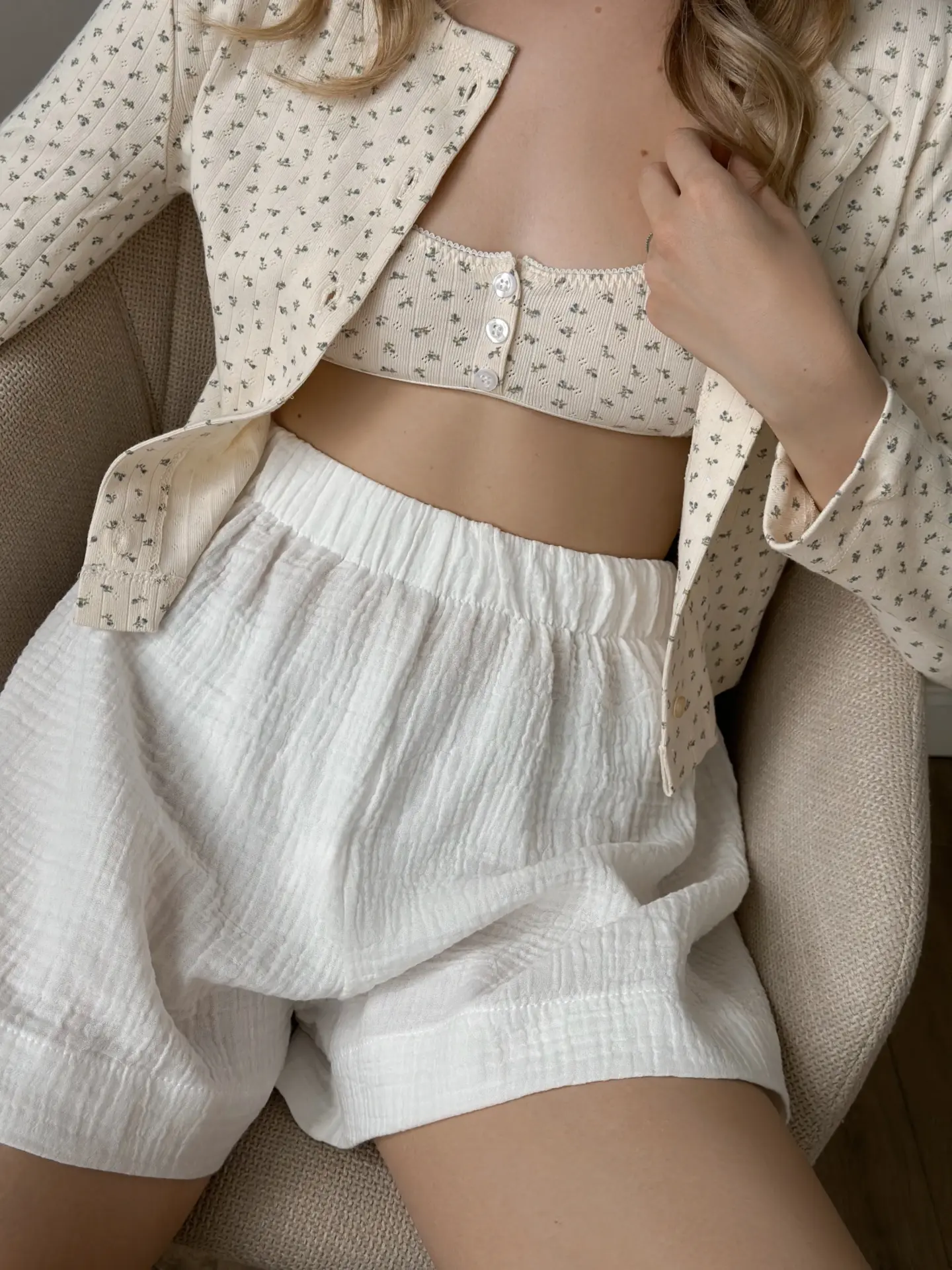 Szorty Mono z muślinu dwuwarstwowego, białe