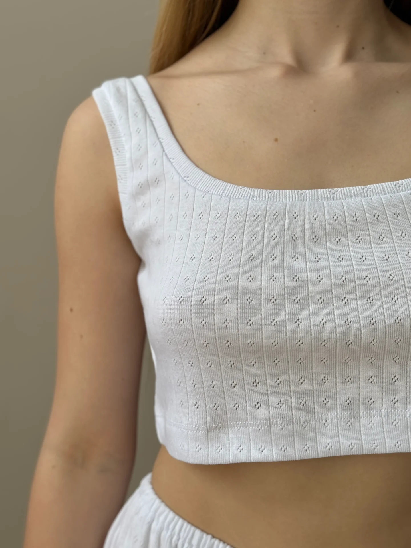 Top mini z ribany prążkowanej, biały